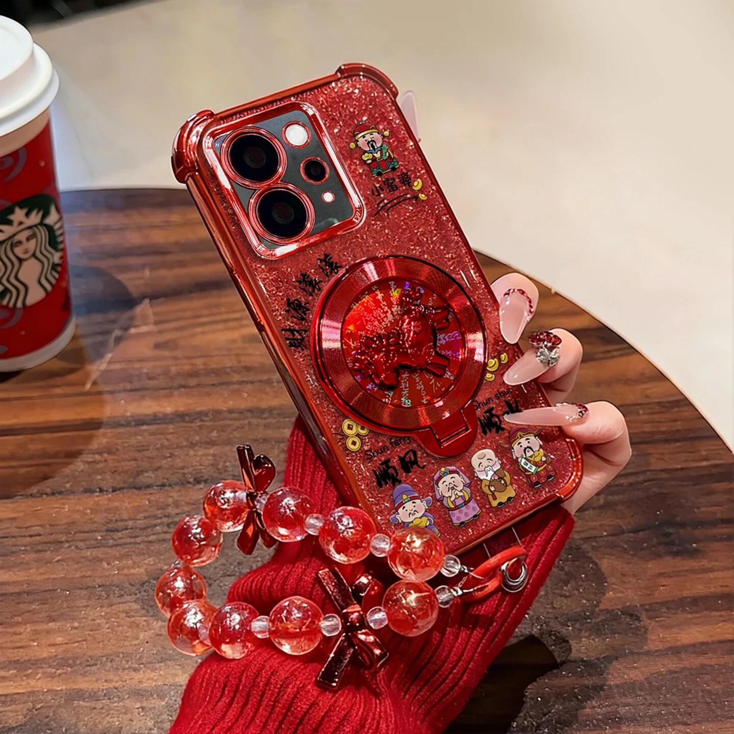 财源滚滚小富婆电镀防摔壳适用vivos50手机壳新款简约vivos19/s30外壳中国红硅胶带手链s20pro透明保护套女款 - 美壳优品数码店