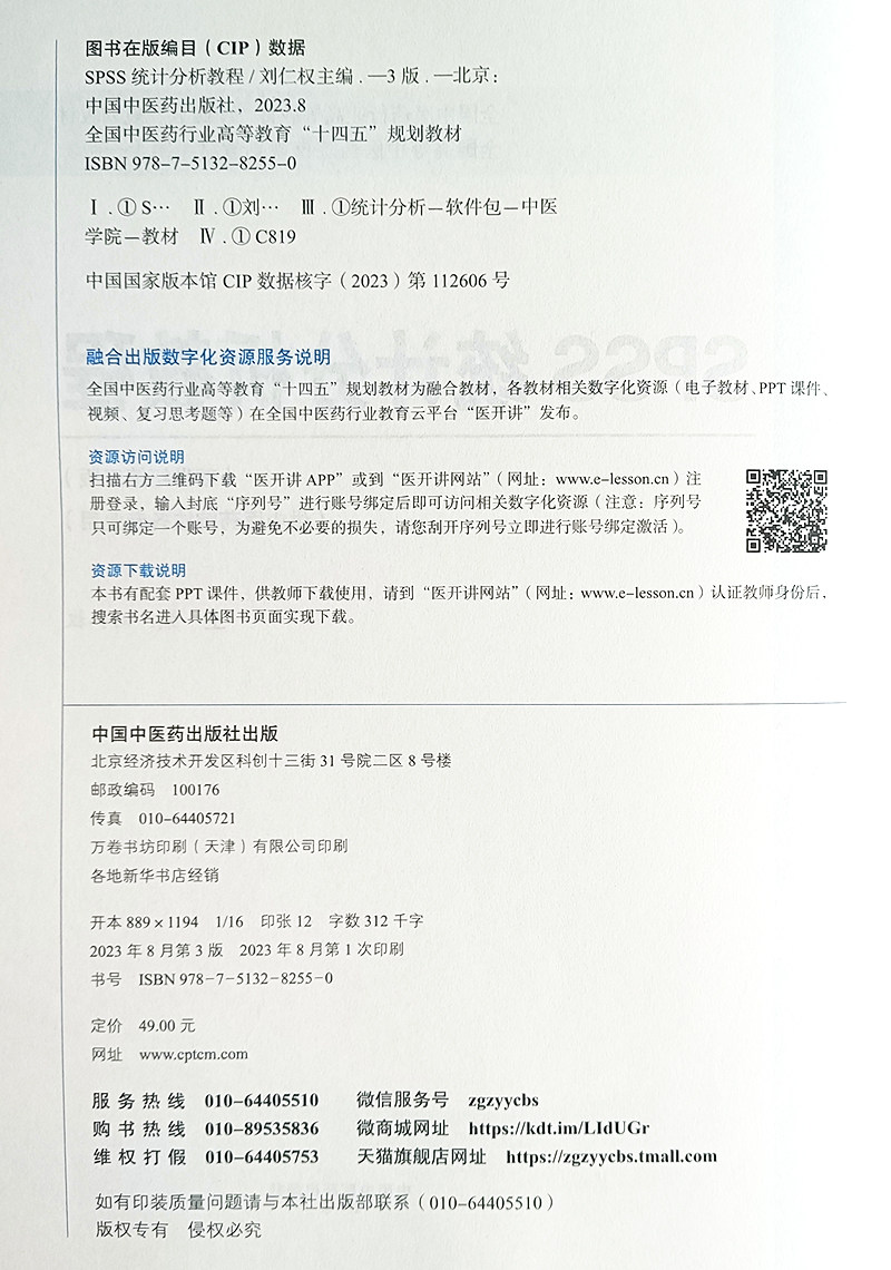 SPSS统计分析教程 新世纪第三版 刘仁权 全国中医药行业高等教育十四五规划教材 供中医院校各专业 中国中医药出版社9787513282550 - 好友图书专营店