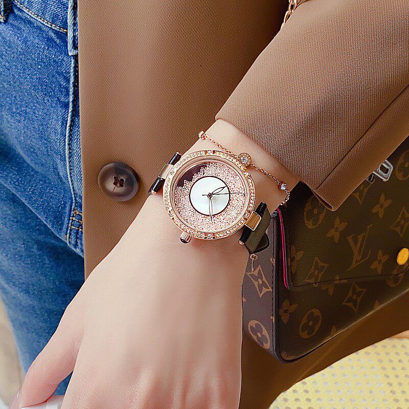 诗高迪时尚玫瑰金色钻面不锈钢表带沙钻防水女士满钻气质韩版腕表 - 零度王爵