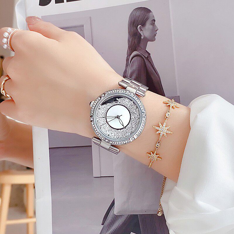您的位置:安康生态农业开发平台  >   >  诗高迪时尚玫瑰金色钻面不锈钢表带沙钻防水女士满钻气质韩版腕表