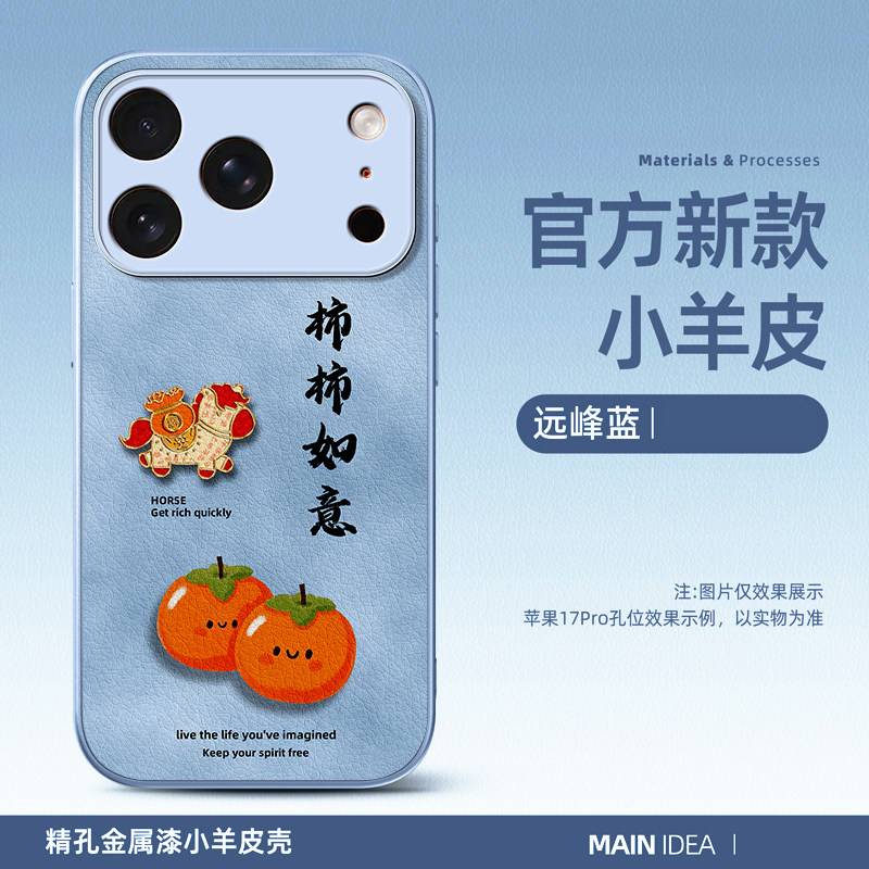 适用于苹果17promax手机壳皮纹古风pro柿柿如意maxiPhone17pro中国风16女款15plus硅胶软壳14pro小羊皮13pm壳 - 震漫旗舰店