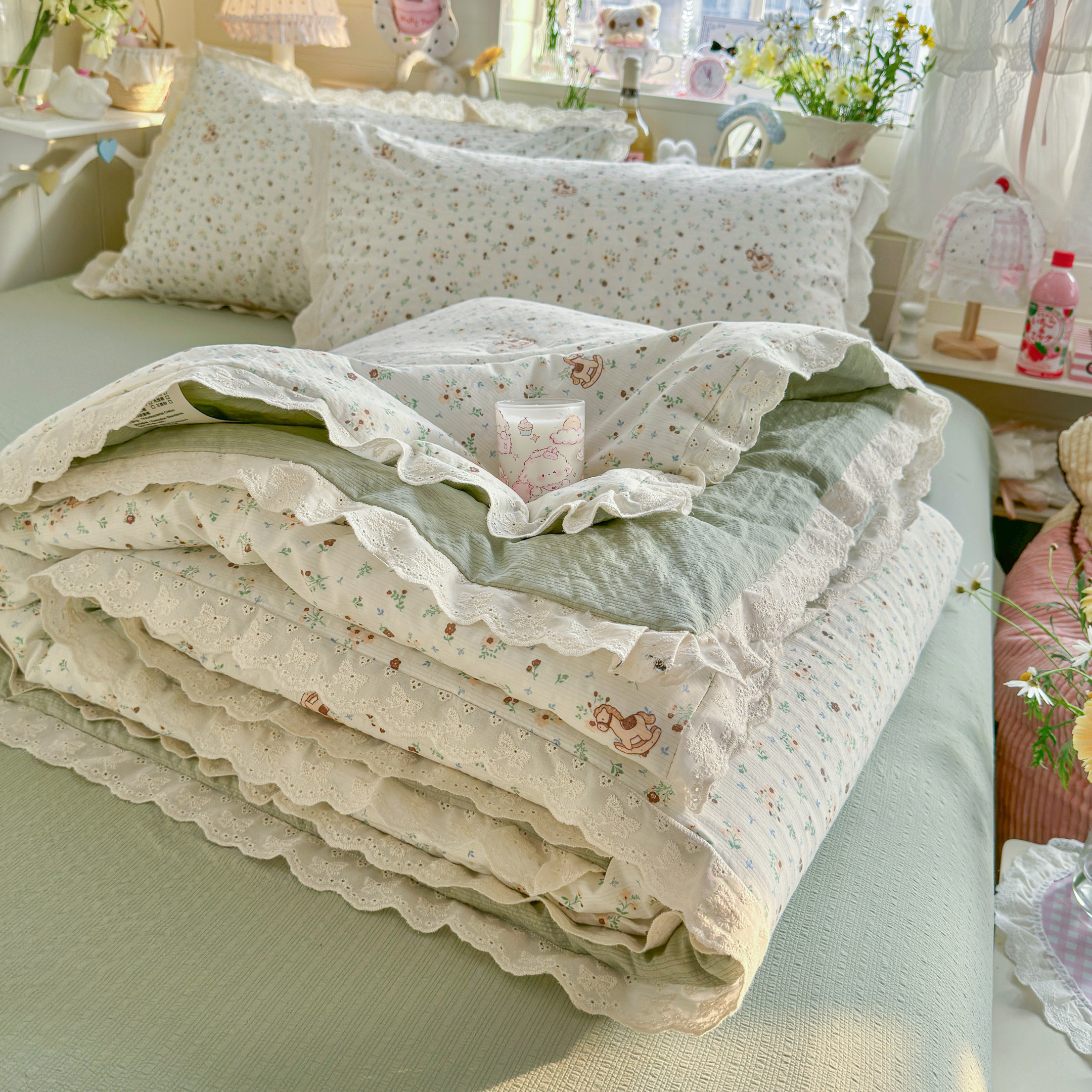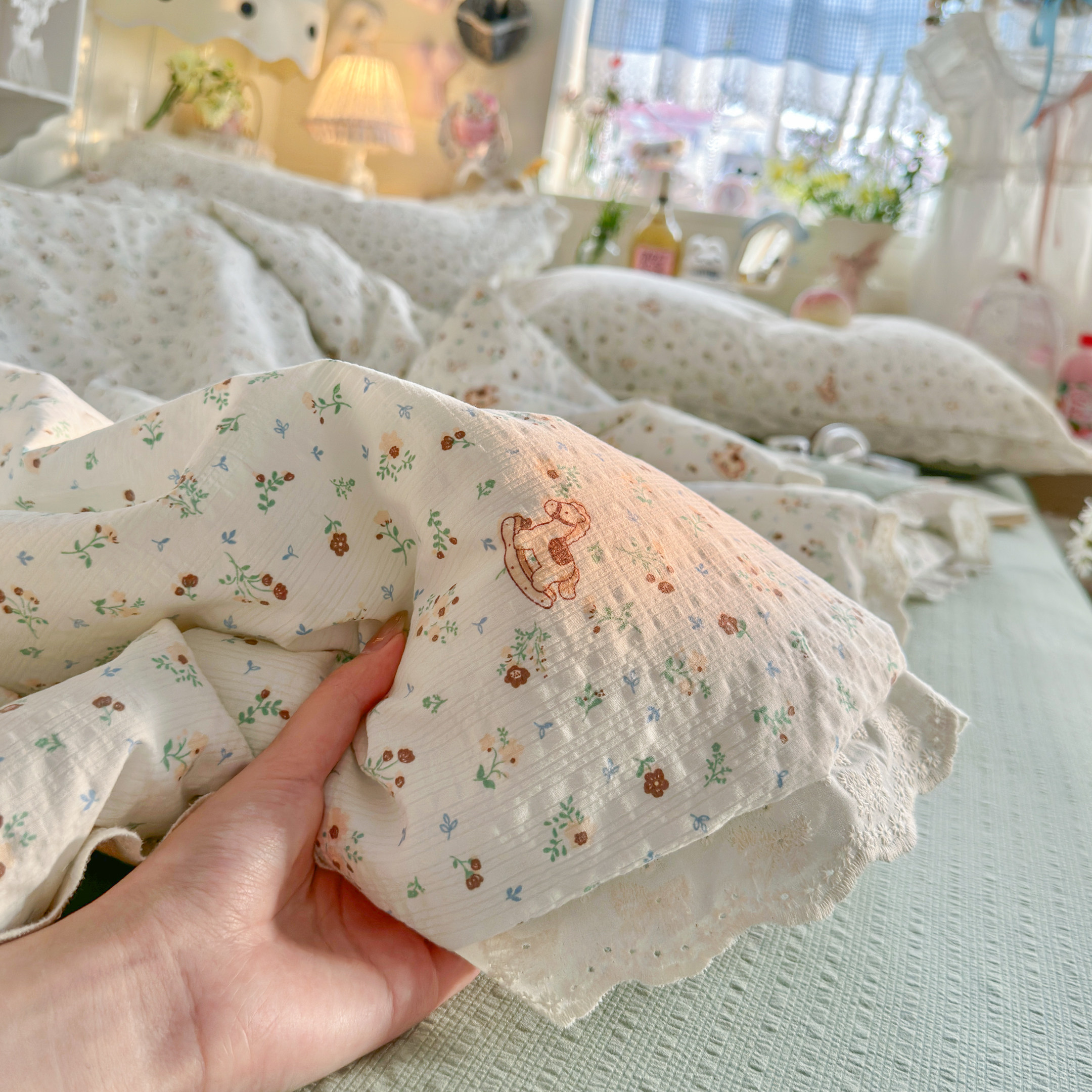 A类夏凉被纯棉全棉小清新田园花边空调被可机洗夏季被芯薄款儿童4 - 墨生活Soft Life