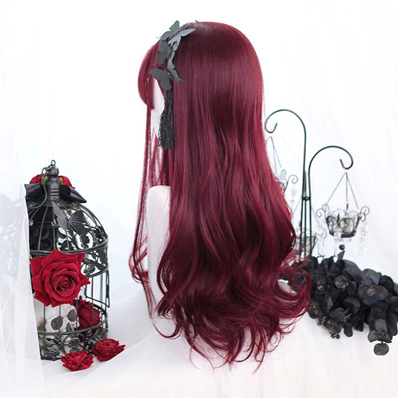 AS Harajuku Red wine Lolita Long Wavy Realistic Cosplay Part - Wig Chic Emporium假发