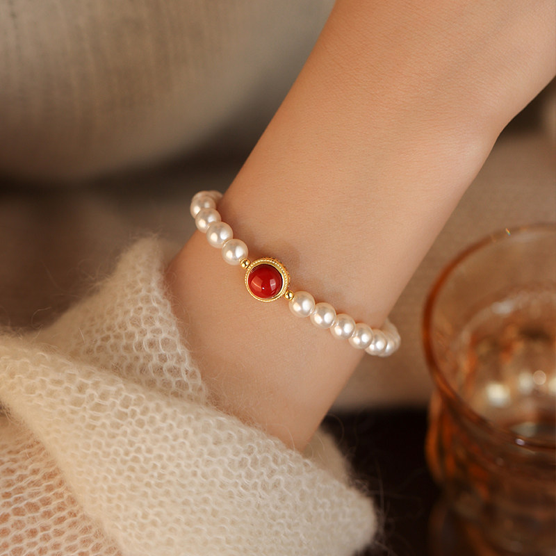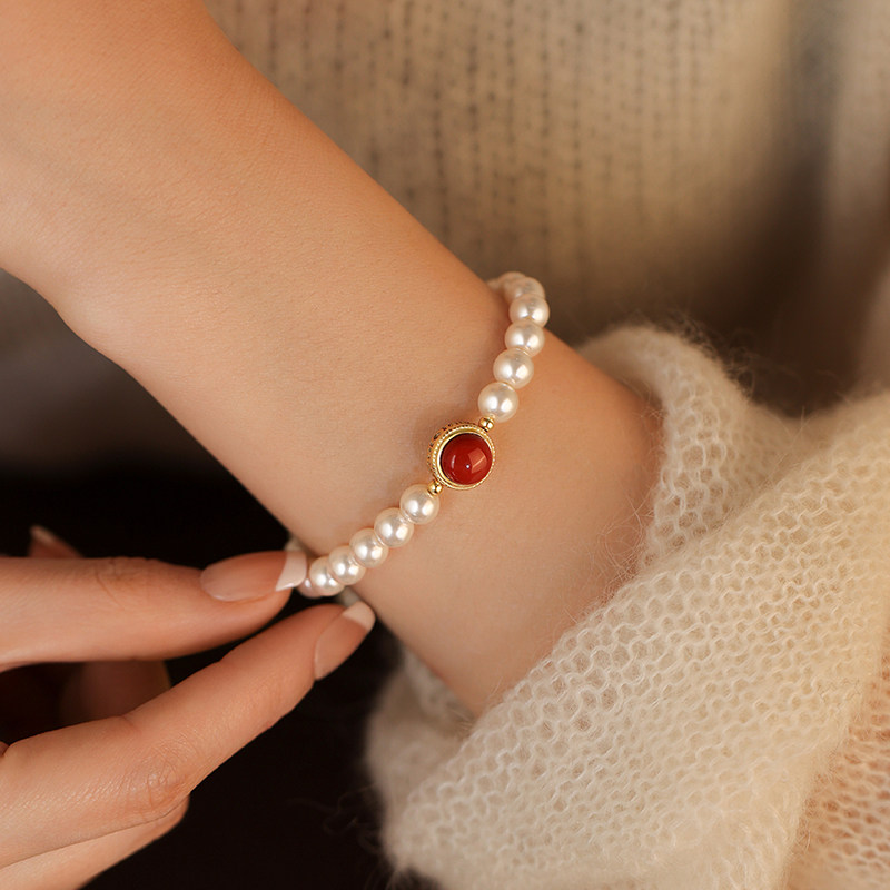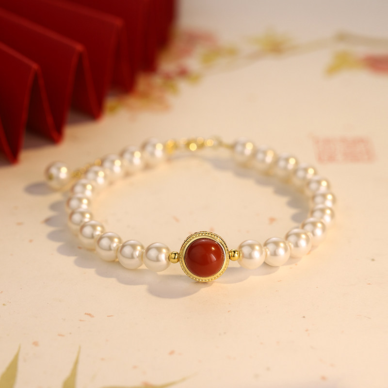 MEILAIFUREN高端定制 925纯银南红珍珠手链轻奢手镯本命年 - 美莱芙人旗舰店