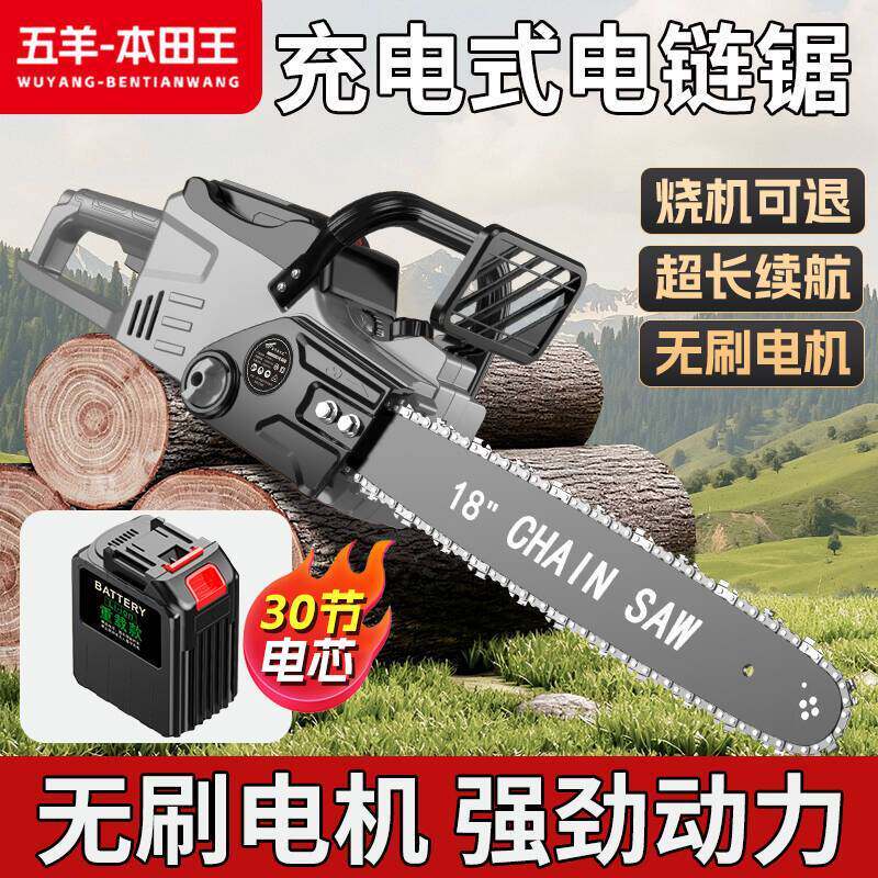 五羊本田王进口30节无刷锂电锯充电式大功率伐木锯手提户外电锯树 - 园林五金工具店