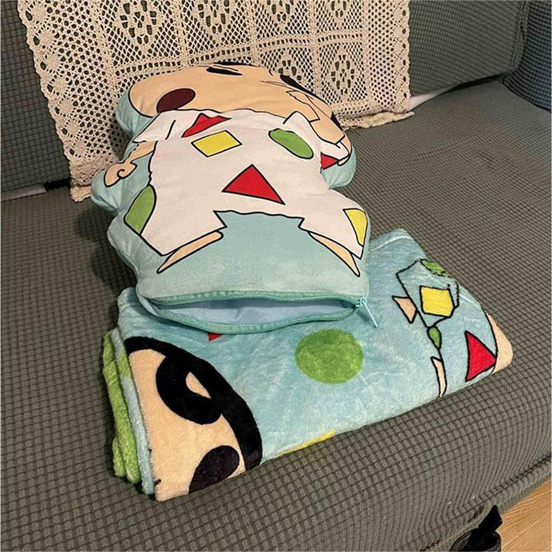 现款蜡笔小新表情包抱枕毯靠垫动漫周边儿童睡觉抱枕毯子 - 奇宝优品