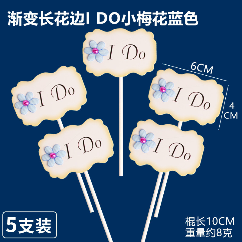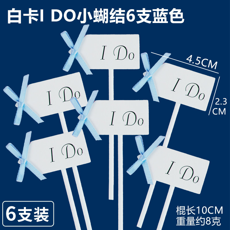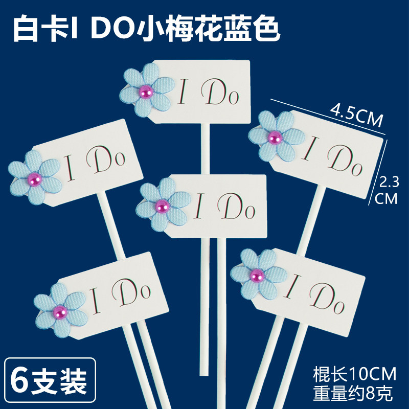 蓝色系白卡I Do纸花插件小蝴蝶结梅花纸花插牌婚礼甜品台装饰插卡 - 小胖烘焙装饰