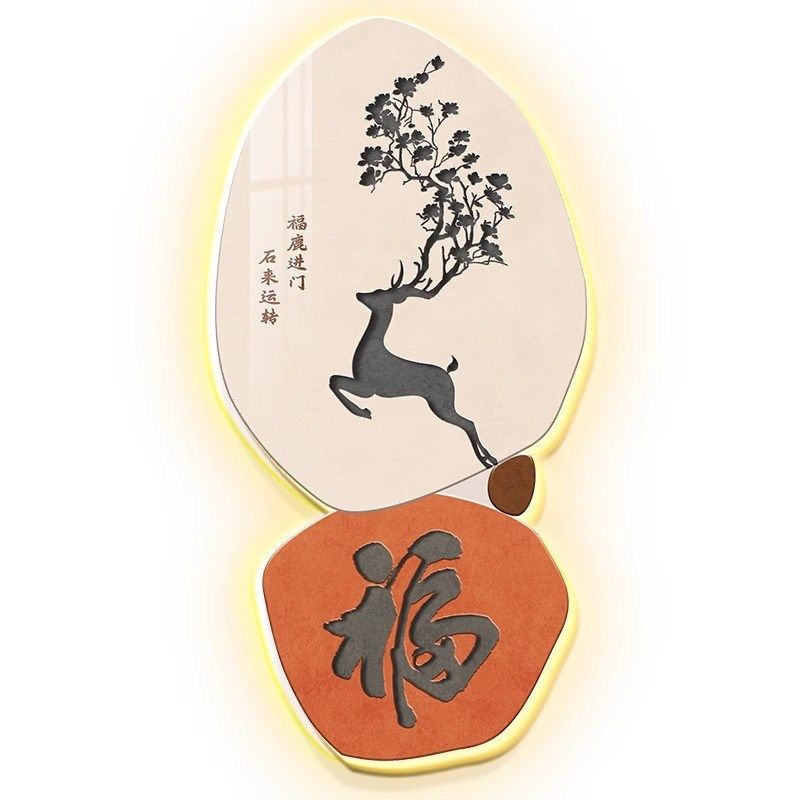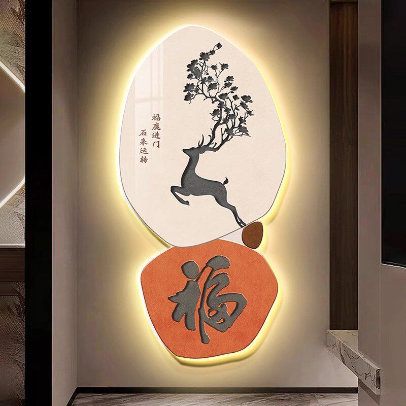 福鹿进门入户挂画LED带灯玄关高端装饰画2024新款正对墙客厅壁画 - 无怀居商城的小店5