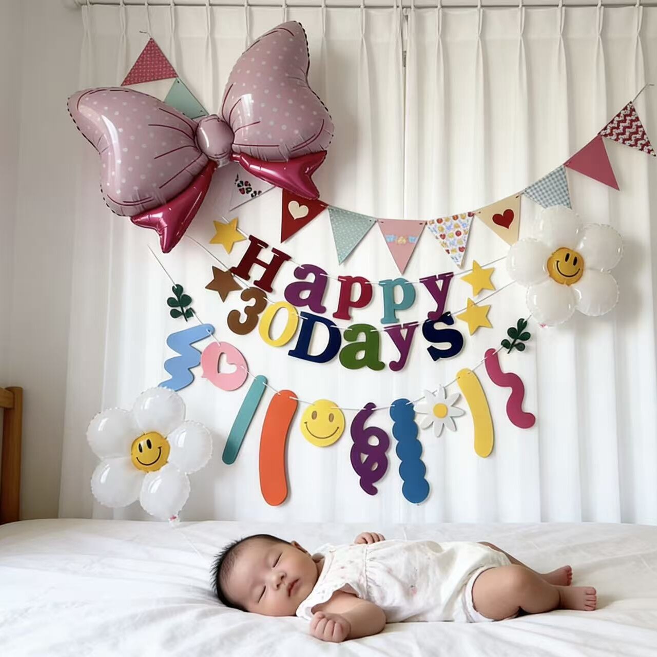 ins女宝宝百日宴百天气球装饰粉色100天场景布置拉旗拉花拍照背景 - 火凤凰庆典