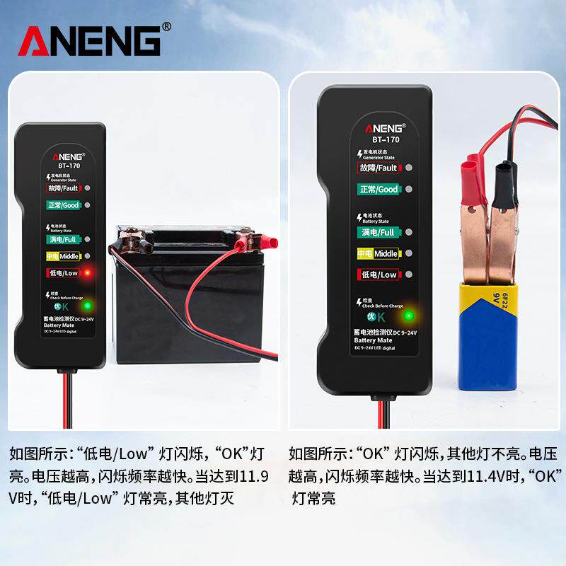 ANENG 12V电瓶测试仪 摩托车电动车蓄电池检测仪 汽车故障检测仪 - 金丰工厂店