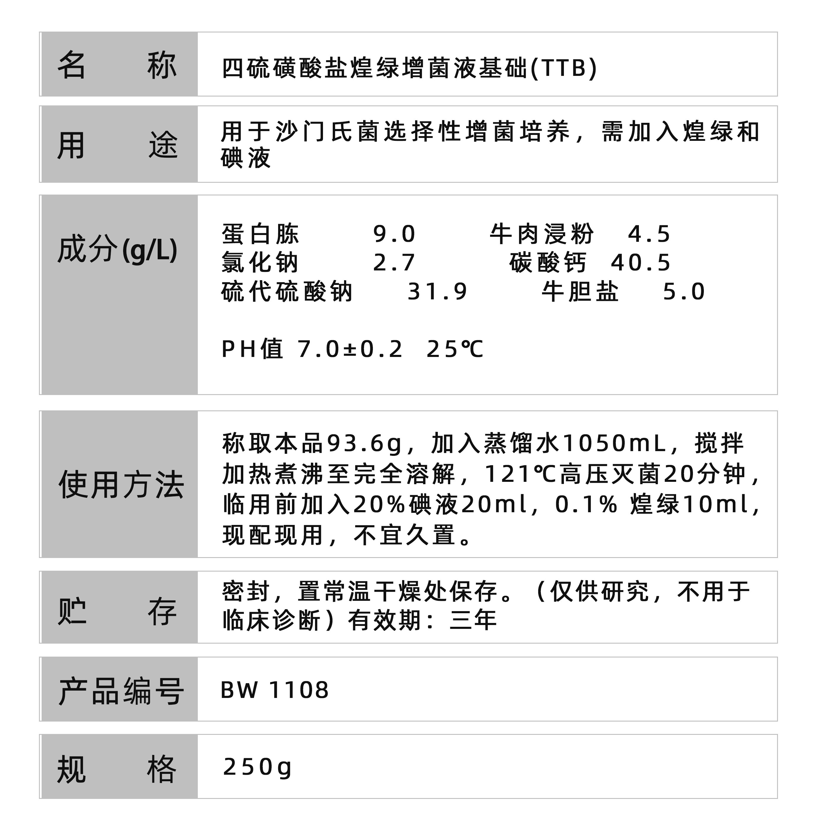 正品百微 四硫磺酸盐煌绿增菌液基础(TTB) 干粉试剂250g可开票包 - 中山百微生物1号分店