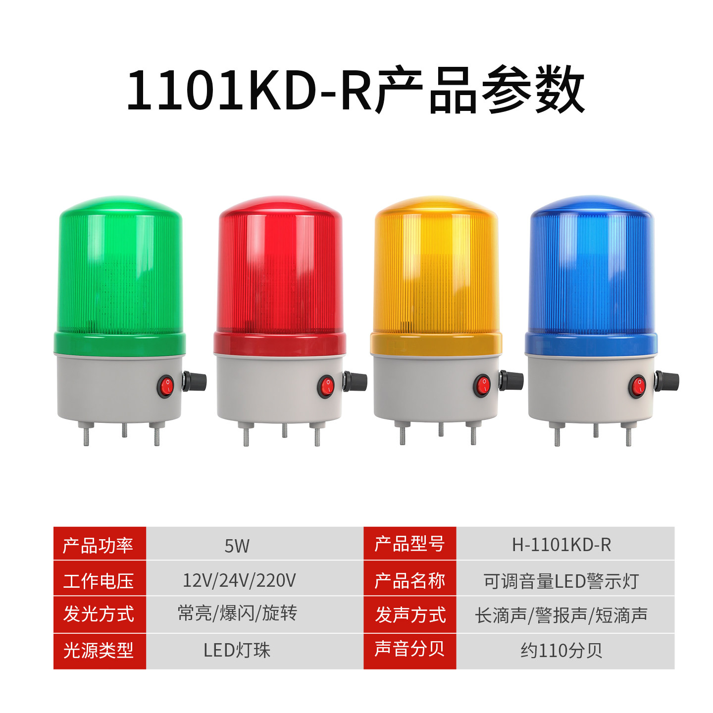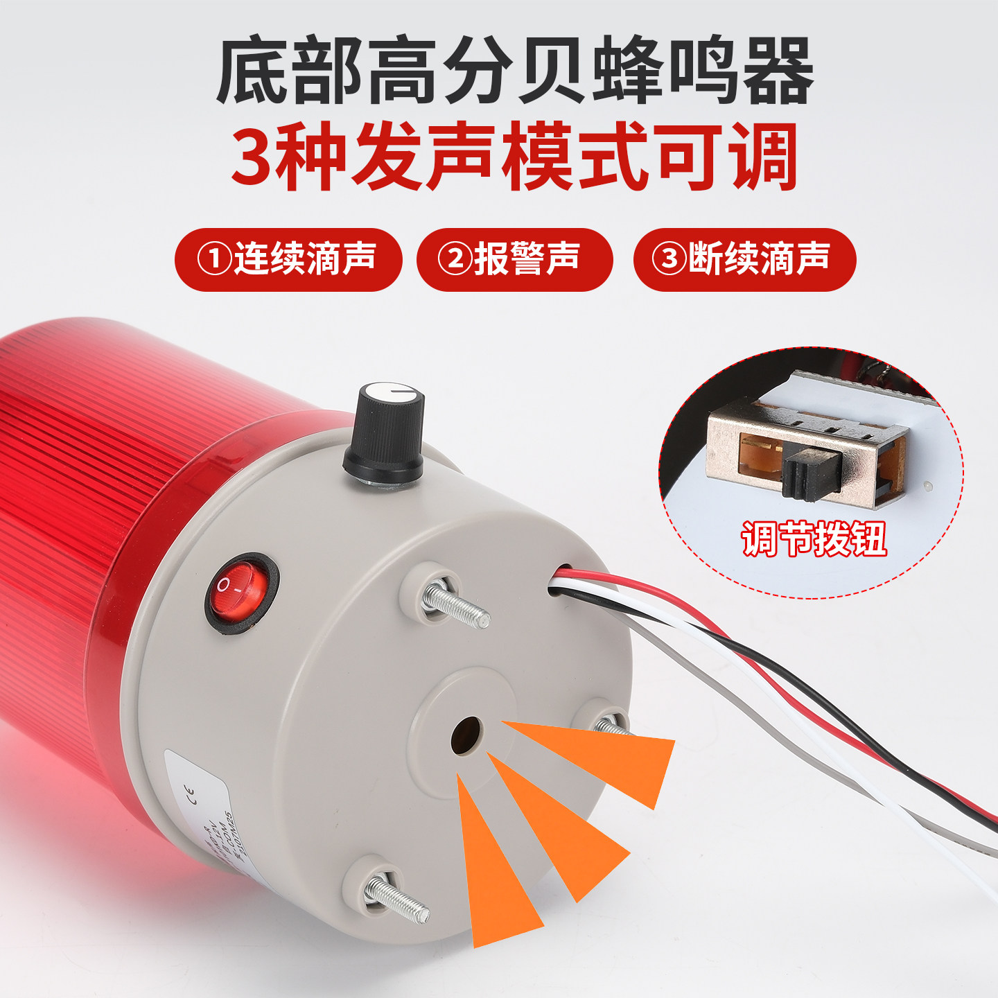 LTE-1101J旋转爆闪警示灯LED闪烁灯24V声光报警器220V音量可调12V - 工业自动化直销店