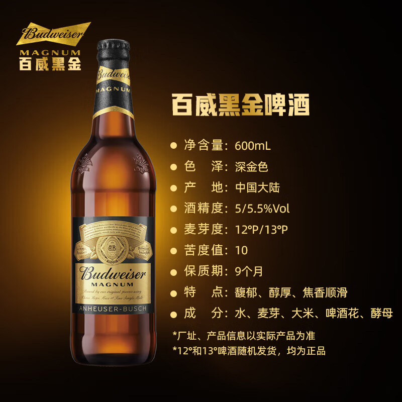 Budweiser百威黑金啤酒美式小麦拉格啤酒600ml瓶装精酿啤酒 - 前红食品专营店