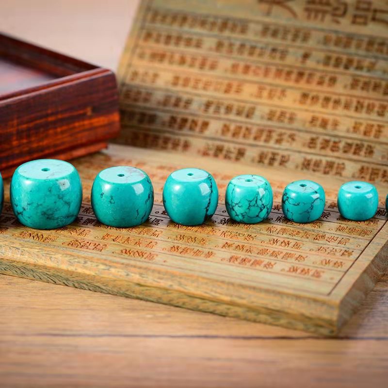 湖北天然绿松石墩子老型珠鼓珠桶珠隔珠顶珠金刚星月菩提手串配珠 - 吉祥圣宝