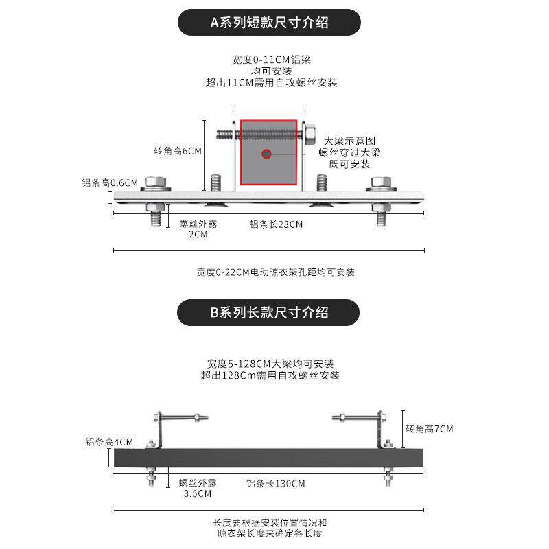 电动晾衣架阳光房专用配件云支架安装神器固定横梁平顶斜顶底座 - 煜坤百货