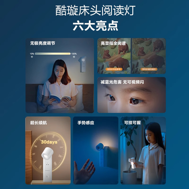 飞利浦护眼床头阅读灯卧室车载学生宿舍充电感应夜灯儿童酷毙led - philips飞利浦金普专卖店