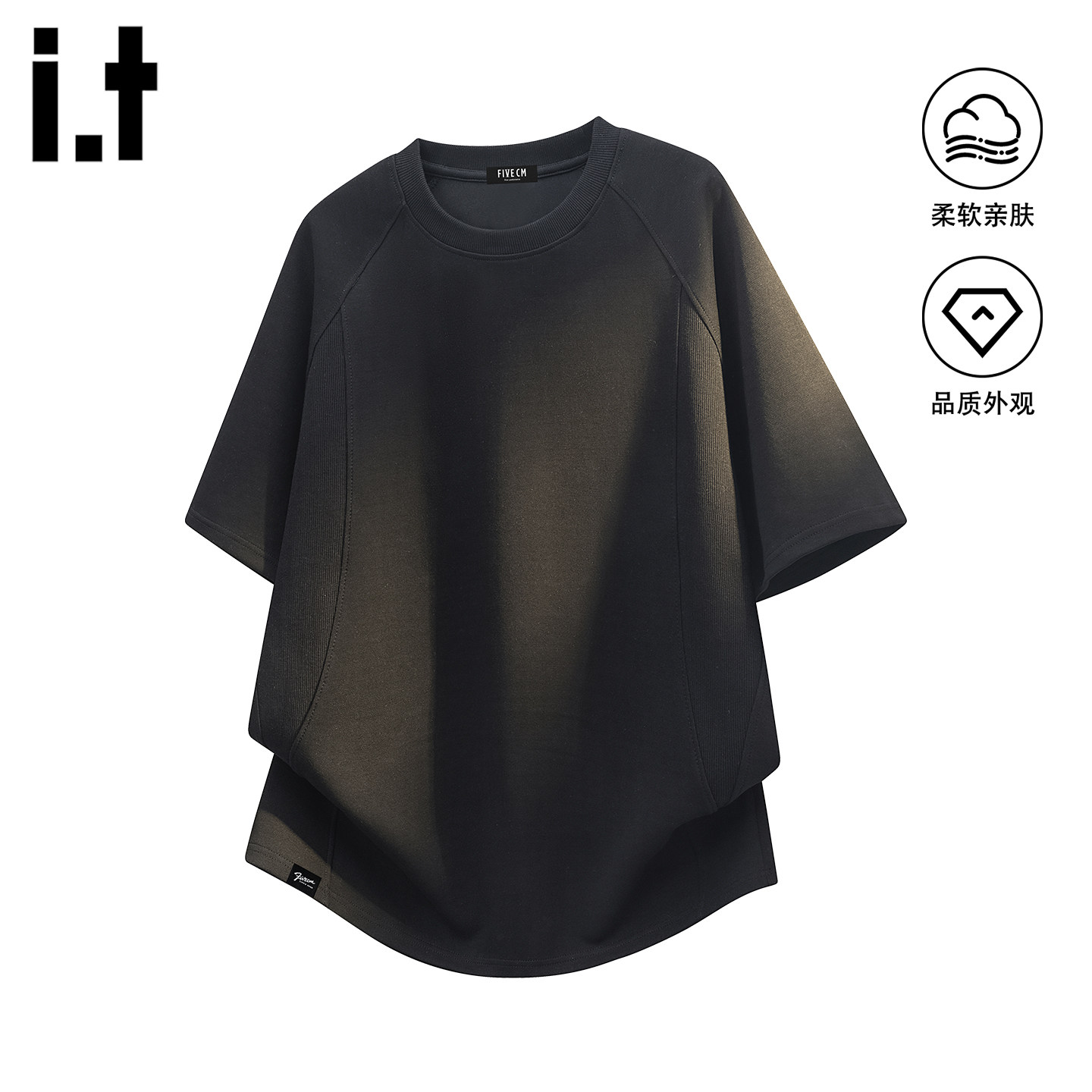 it FIVECM美式正肩短袖T恤男夏季杏色圆领宽松高级感美式复古上衣 - FIVE CM官方旗舰店