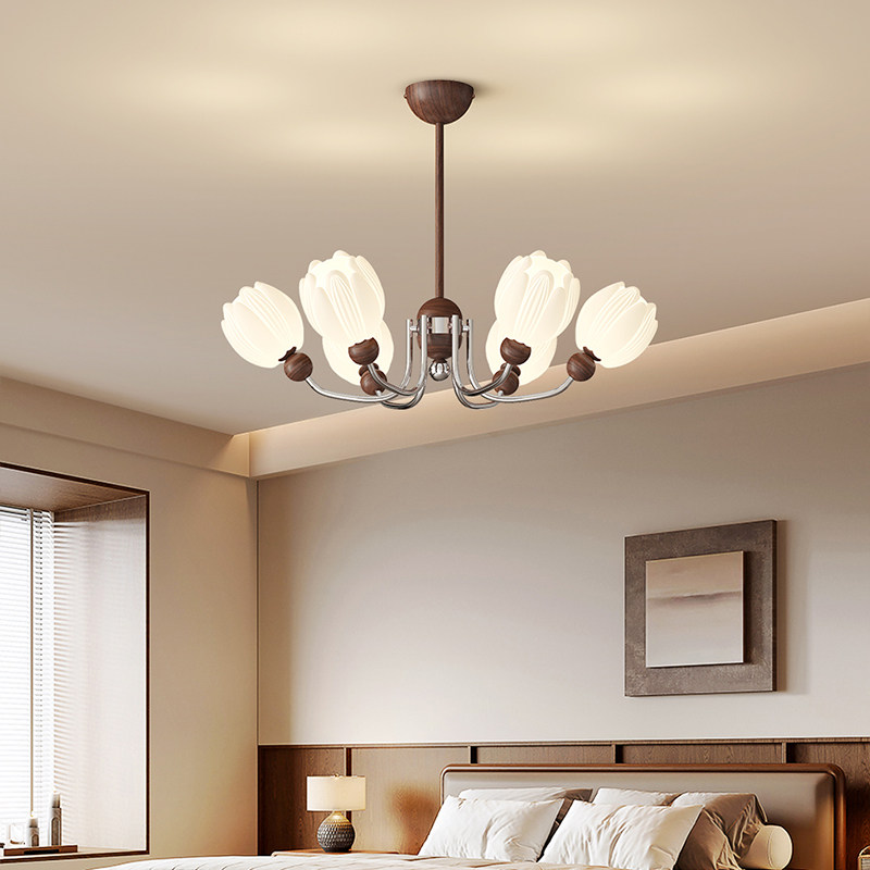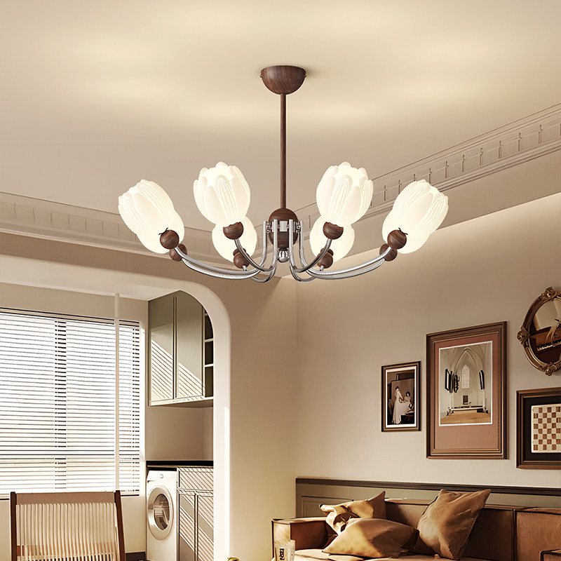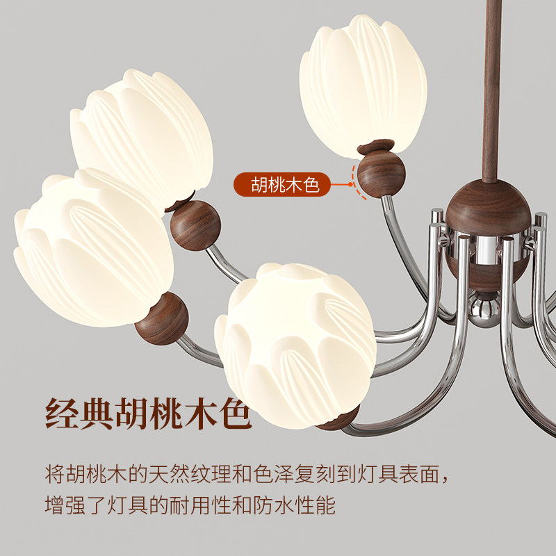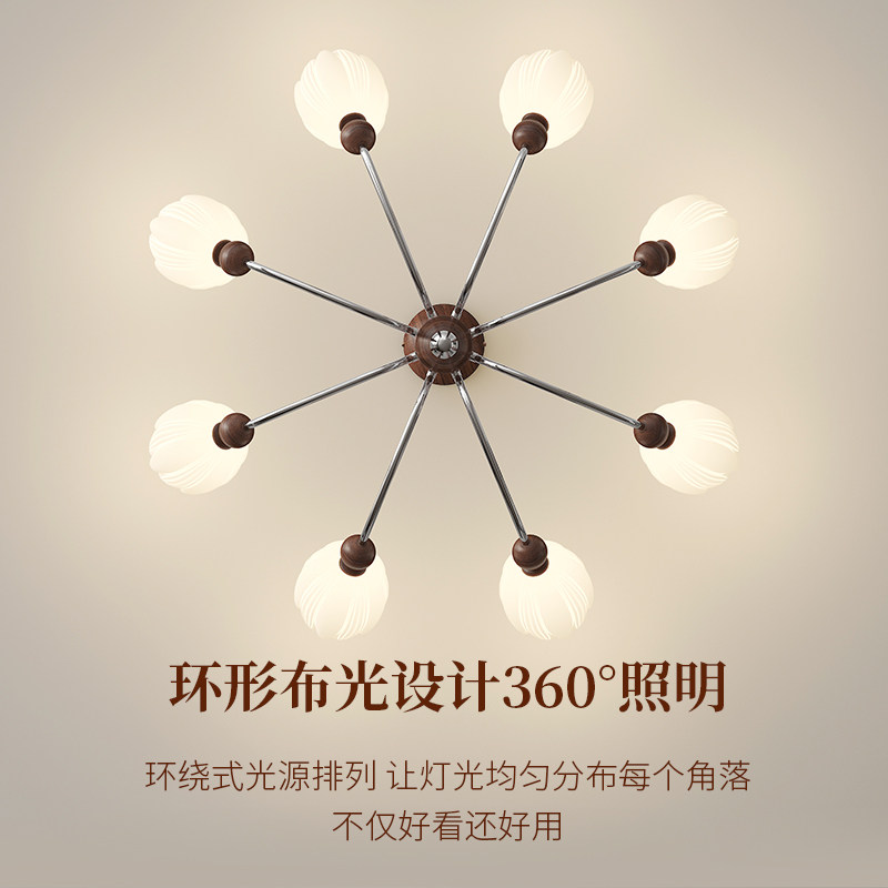 客厅吊灯现代简约创意胡桃木色LED护眼法式中古奶油风新款LED灯具 - 智能家居严选