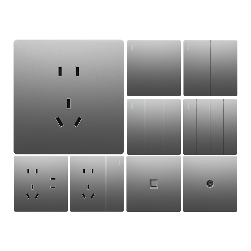 国际电工86型灰色开关插座面板16a家用一开五孔带USB多孔双控暗装 - 国际电工第一店