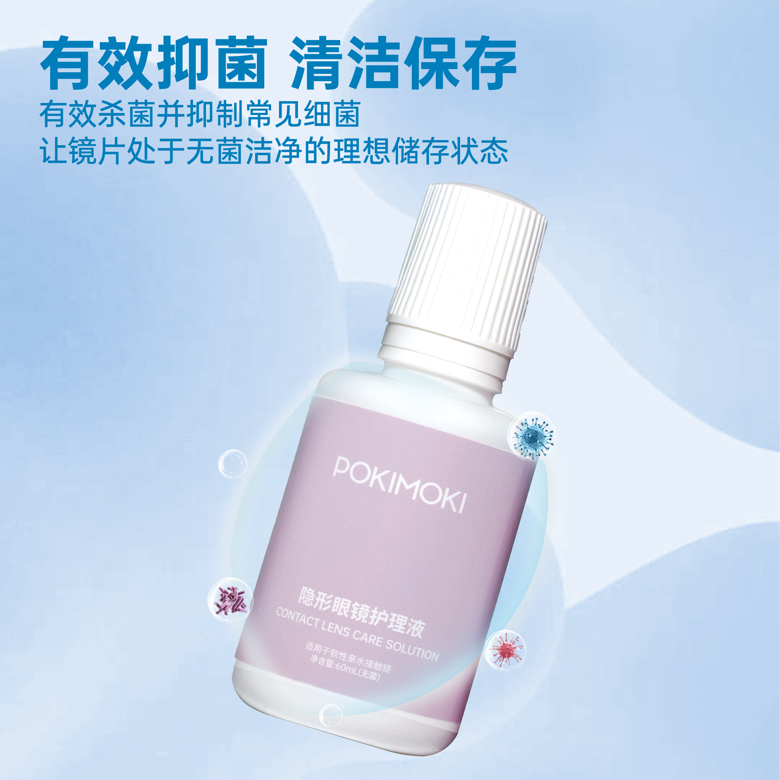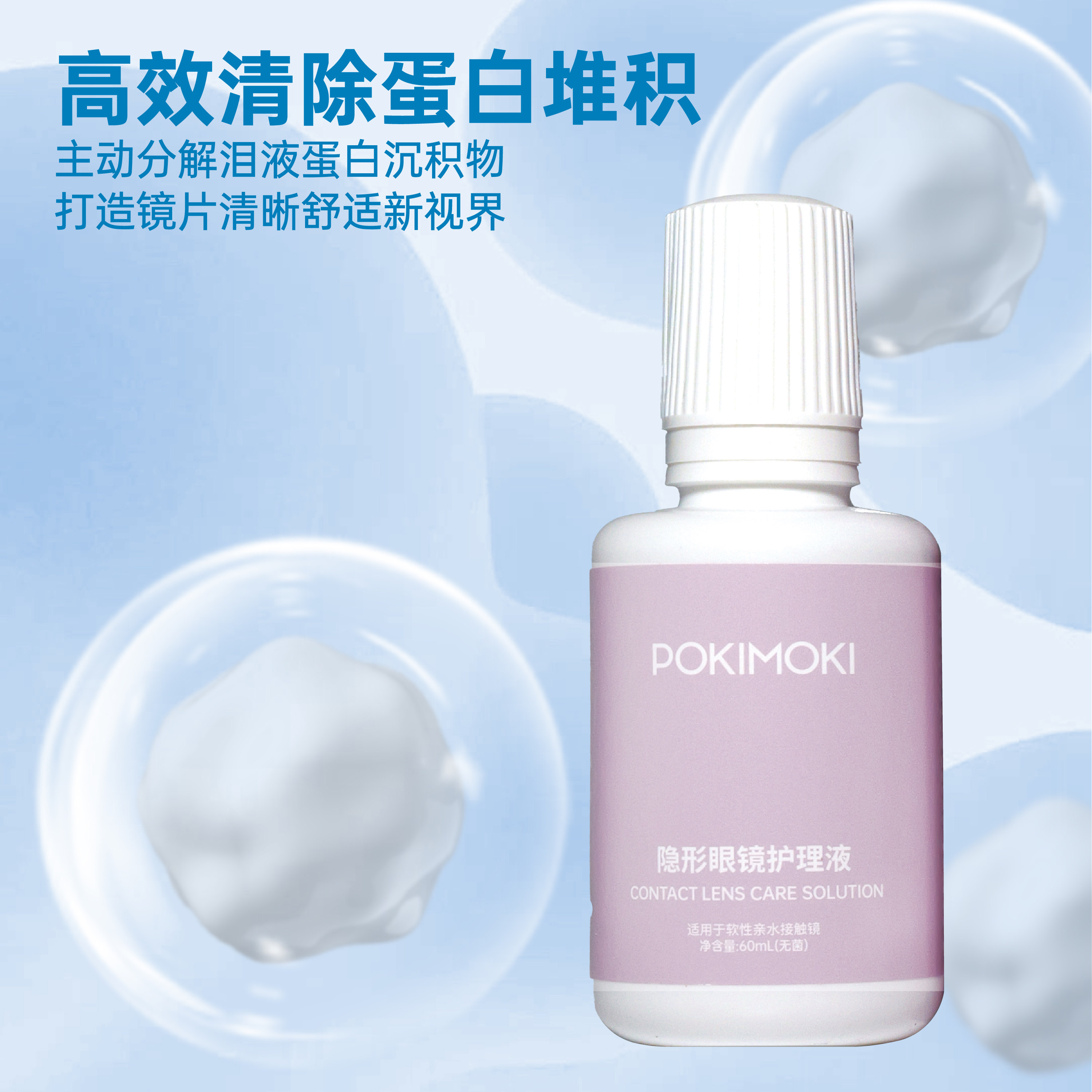 POKIMOKI隐形眼镜护理液小瓶装去蛋白水润60ml3瓶美瞳专用护理液 - POKIMOKI旗舰店