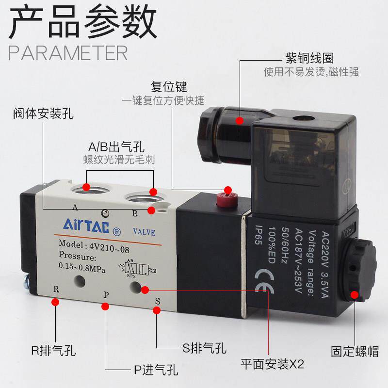 您的位置:安康生态农业开发平台  >   >  亚德客4V210-08二位五通24V气动电磁阀110-06气缸换向电子气阀220