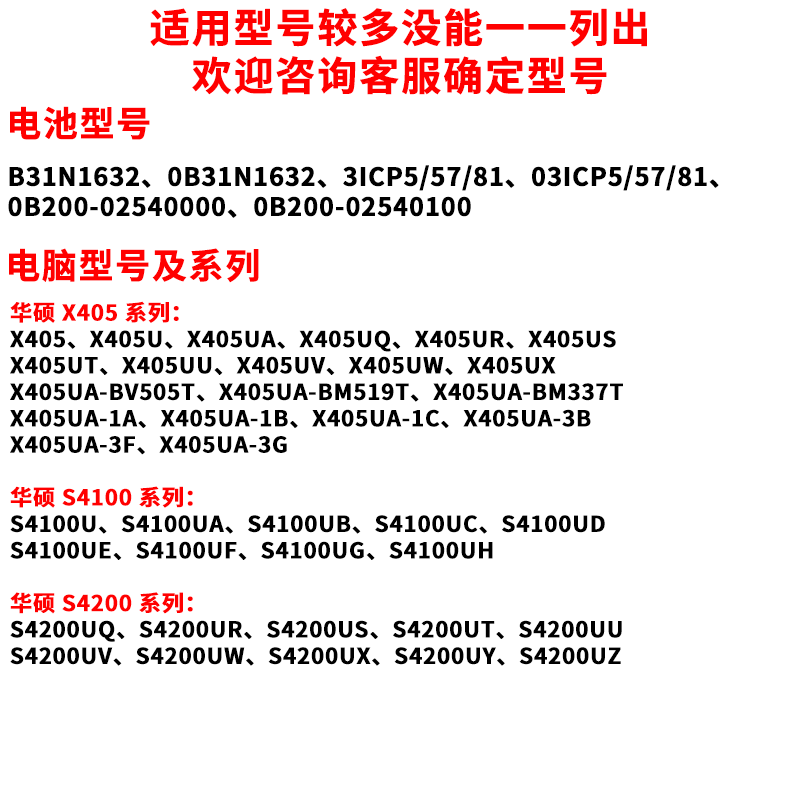 适用华硕灵耀 S4100U S4000U Zenbook X405U B31N1632 笔记本电池 - 笔记本电池新能源