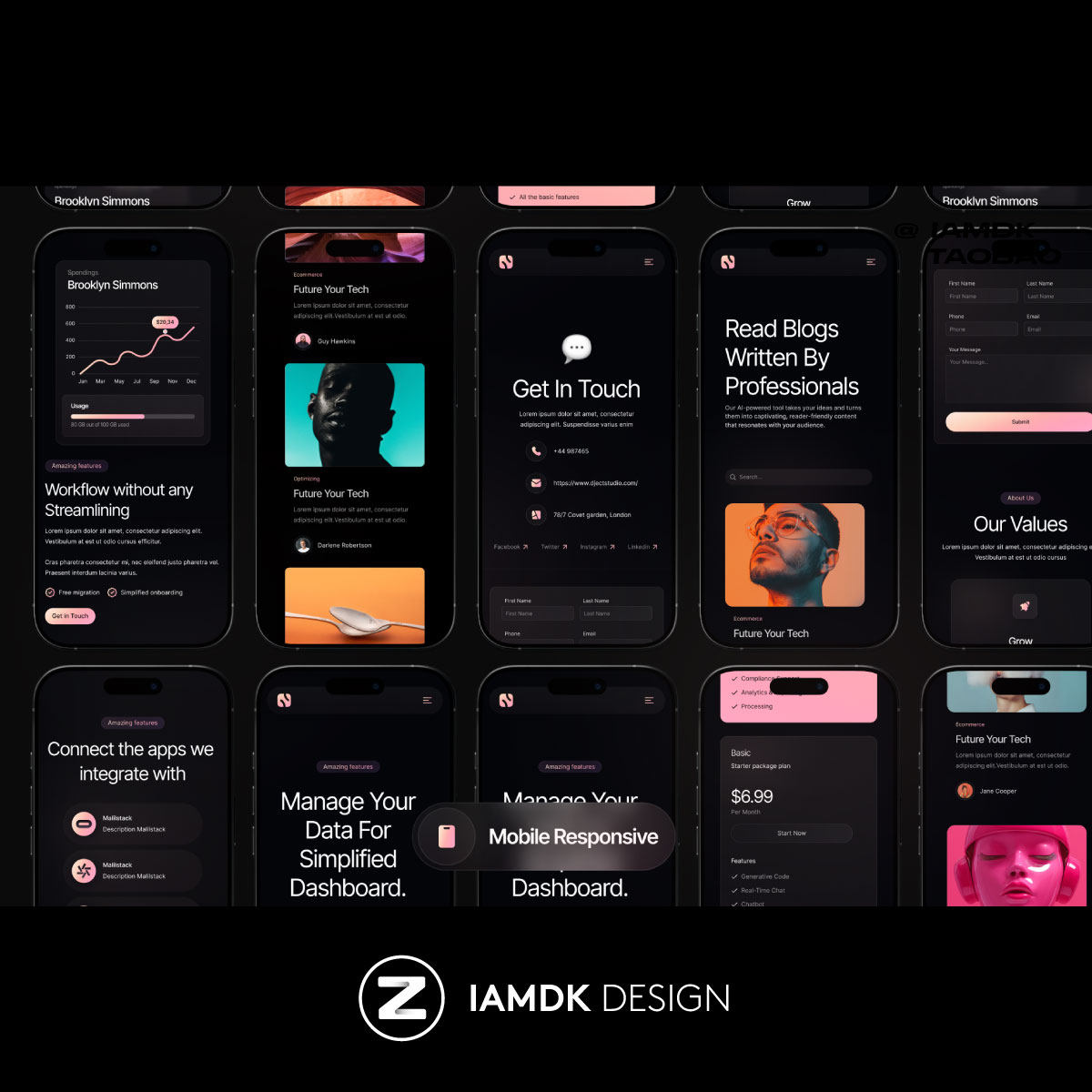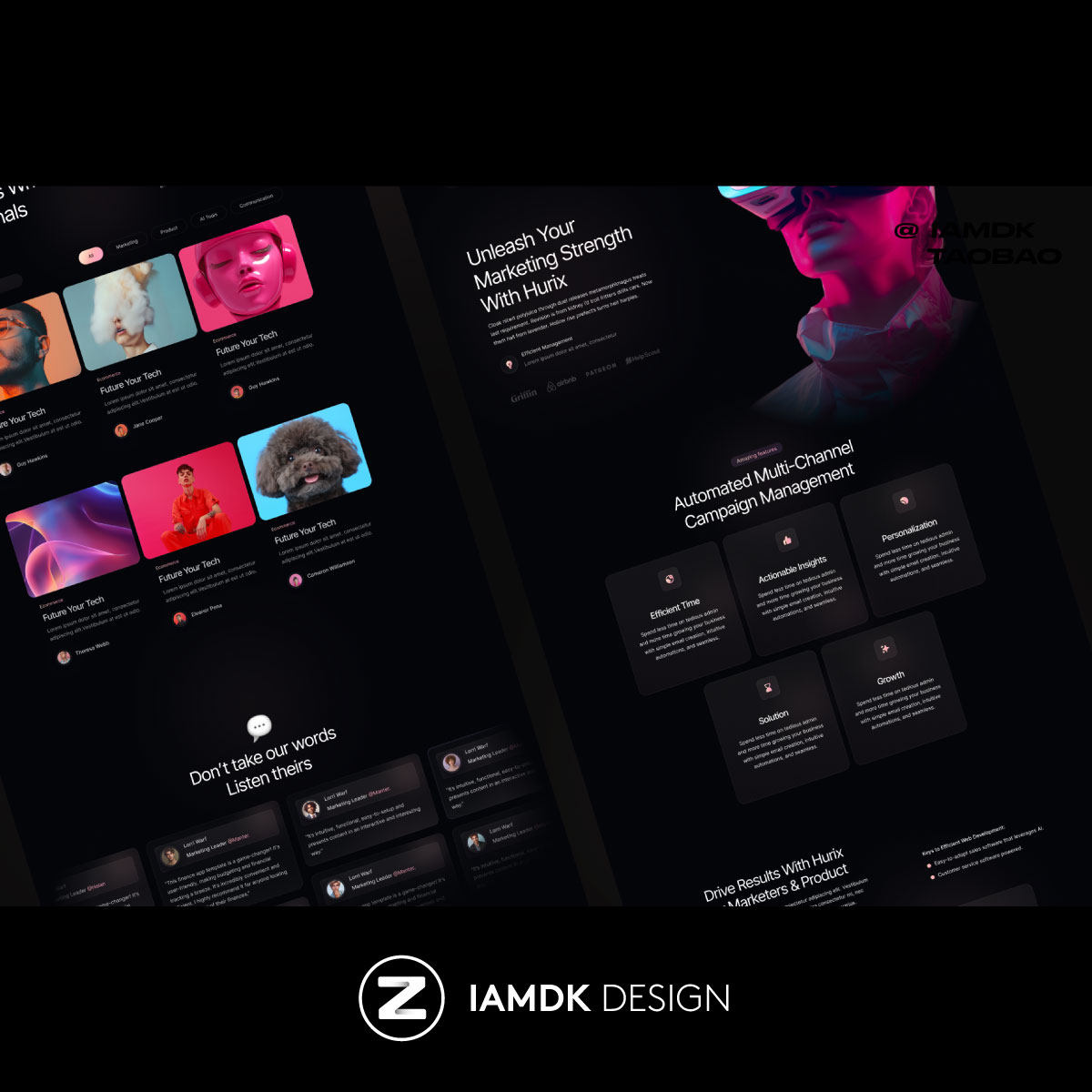 黑化风响应式SaaS平台网站WEB UI界面设计Figma/Sketch格式模板 - 早道大咖素材 IAMDK DESIGN
