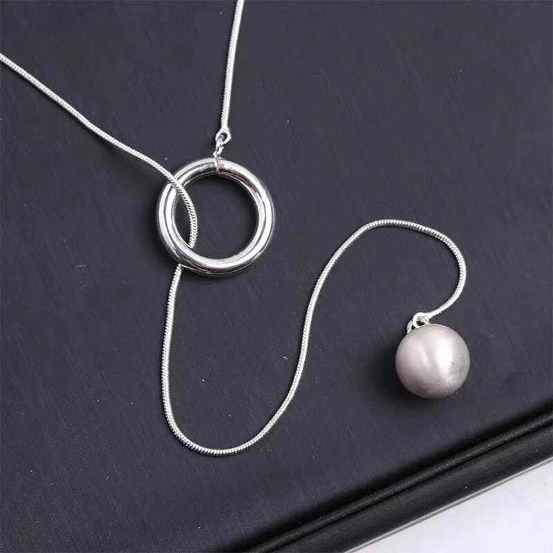 韩国2026新款圆球项圈拉丝长款项链女ins不掉色高级感轻奢毛衣链 - 银世缘