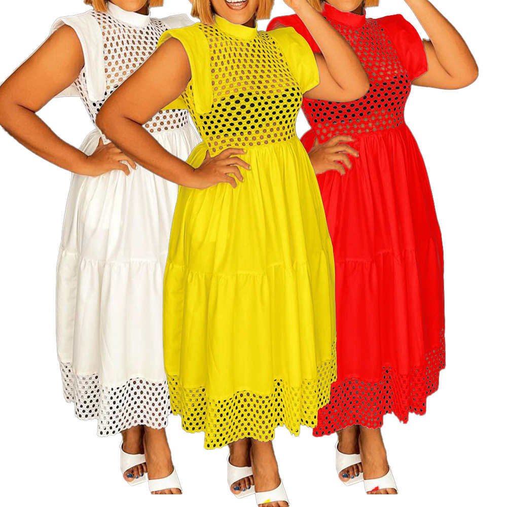 3XL Large Hollow Splicing A-line Skirt Women's Dress女连衣裙 - Beautiful clothing