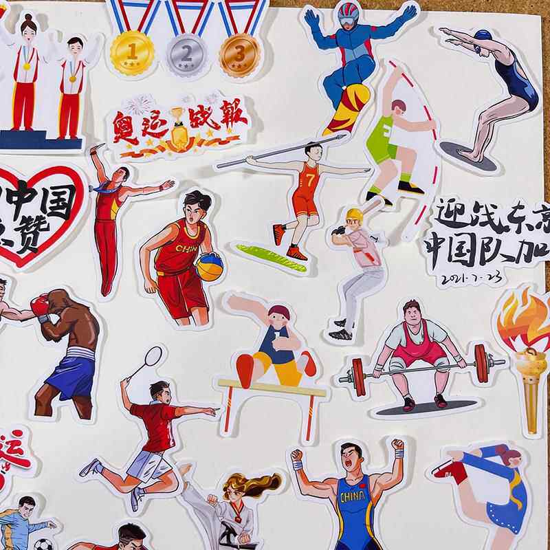 可爱卡通运动会人物贴纸学生励志手抄报手帐日记本防水装饰小贴画 - 综艺熊蓝迅远专卖店