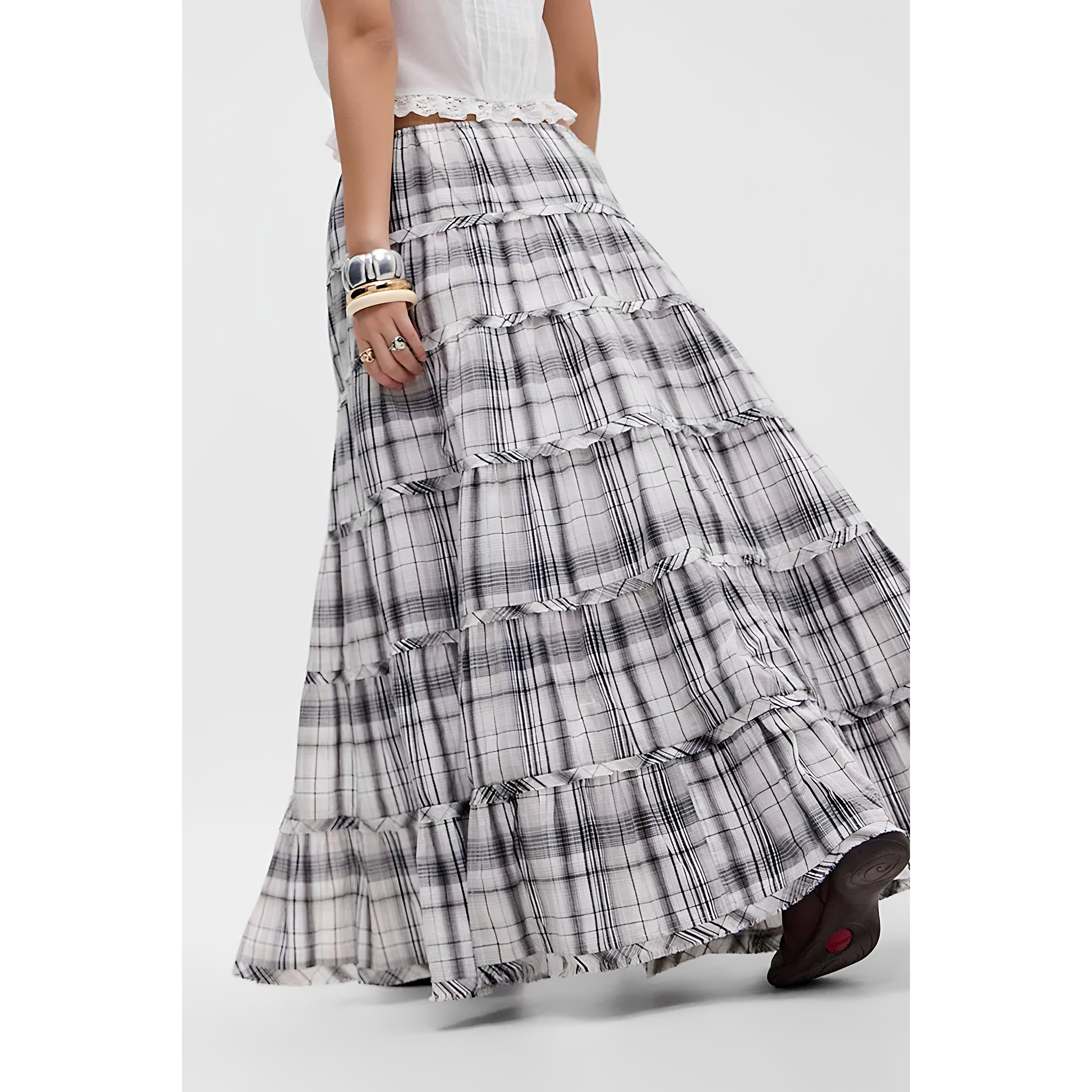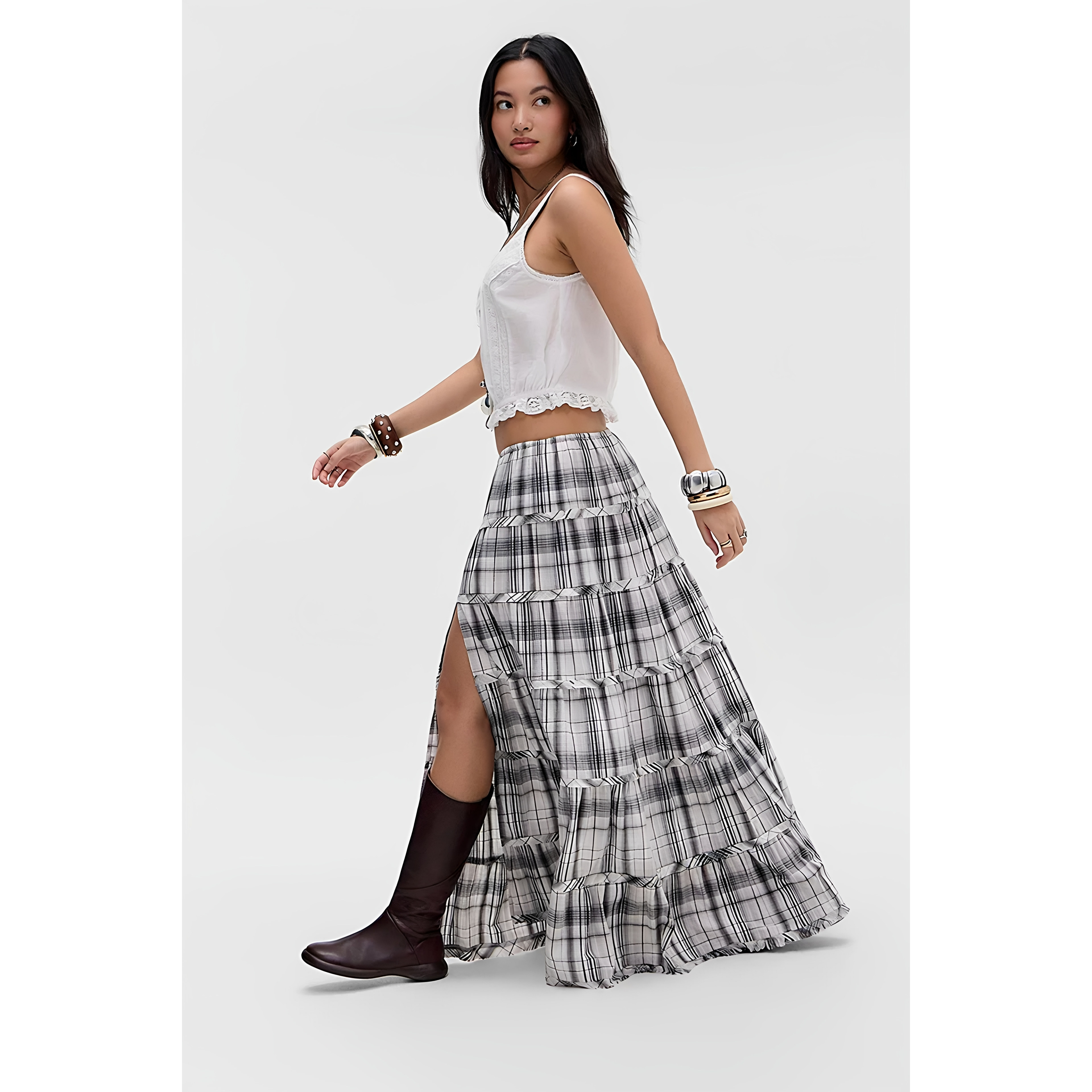 英国代购正品04.05 名品UO 女装新款 时尚格子开叉长款半身裙 - 败家欢欢在英国