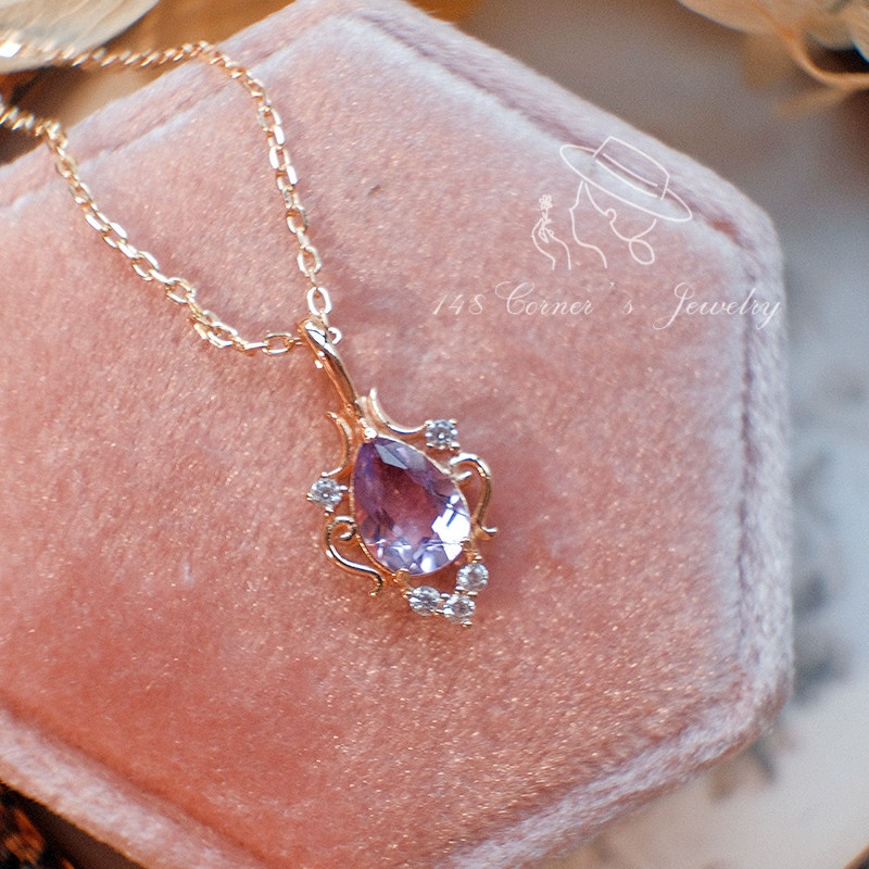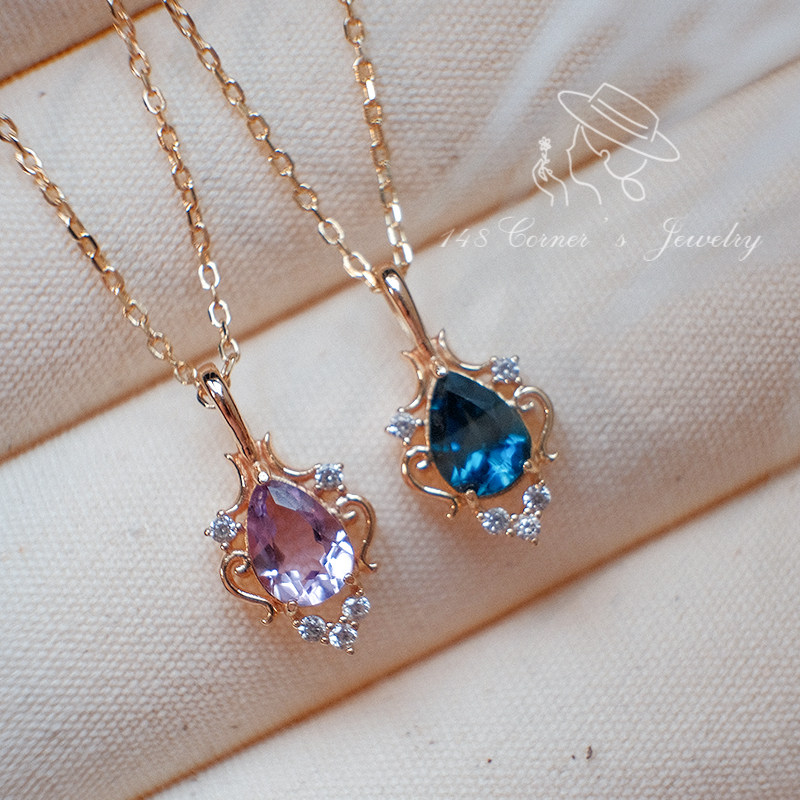 日系轻奢精致复古紫水晶伦敦蓝托帕石花环925银镀金项链锁骨链 - 148corner独立创意轻珠宝饰品