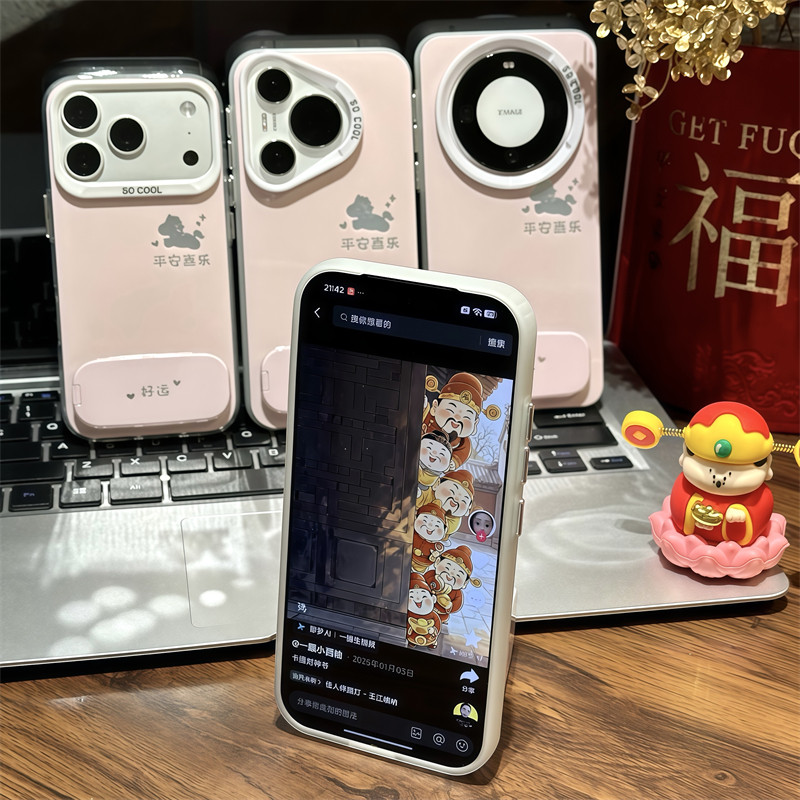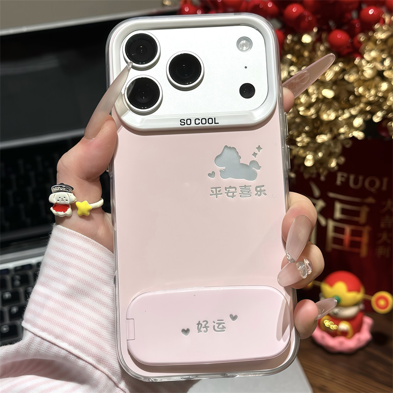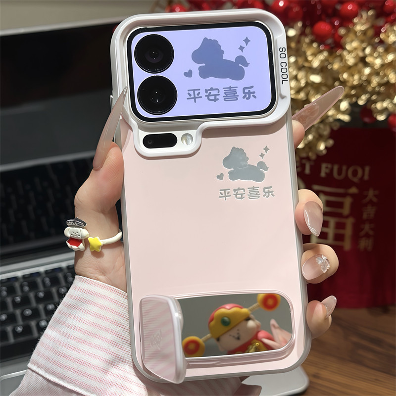 平安喜乐马适用苹果17promax镜面支架手机壳iPhone16pro新款磨砂彩银华为Mate80防摔vivo300男女小米17pro软 - 森缪旗舰店