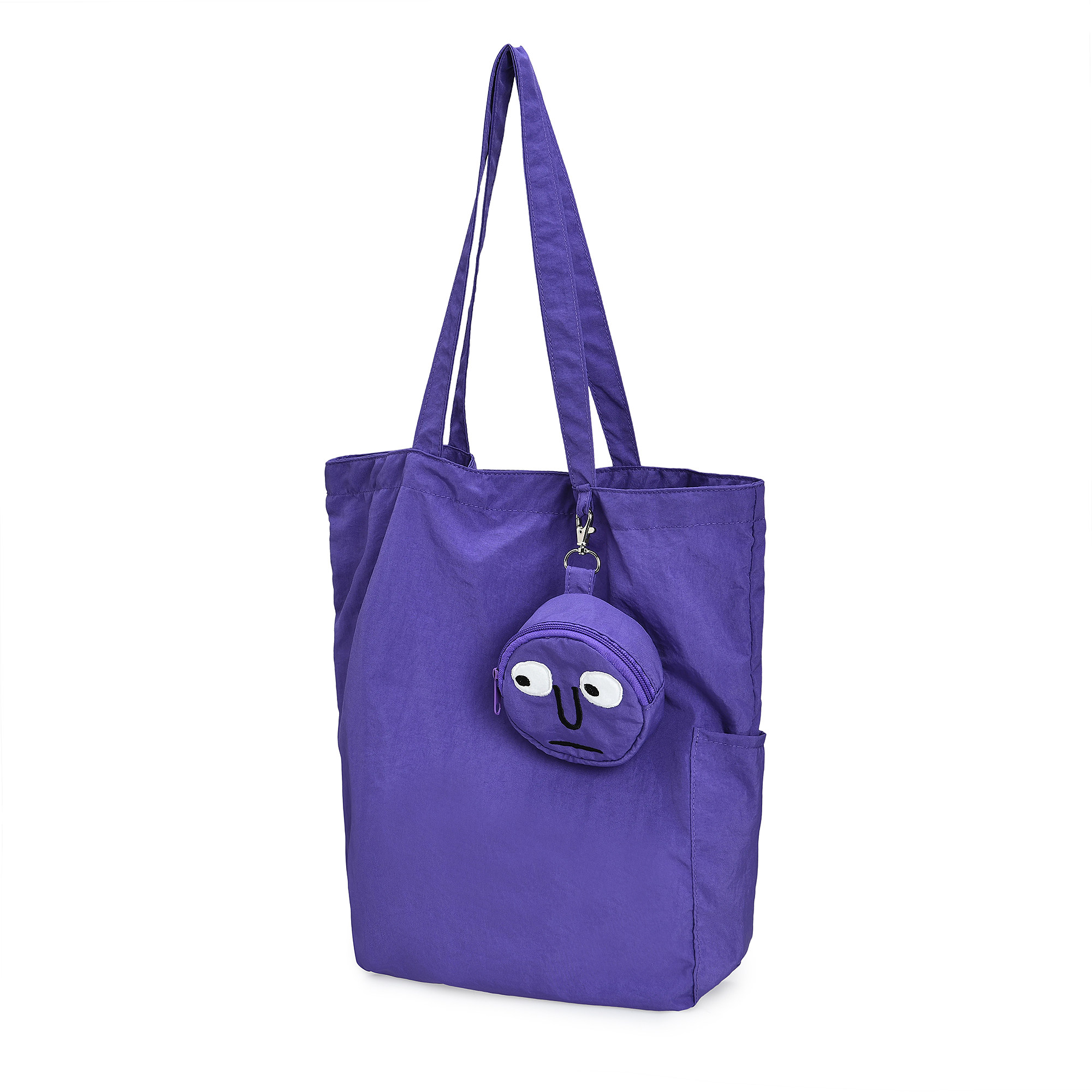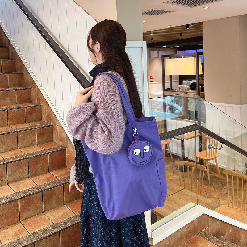 LOOSECANNON男女单肩防水包紫色笑脸绣花托特包大容量手提斜挎包 - LOOSECANNON