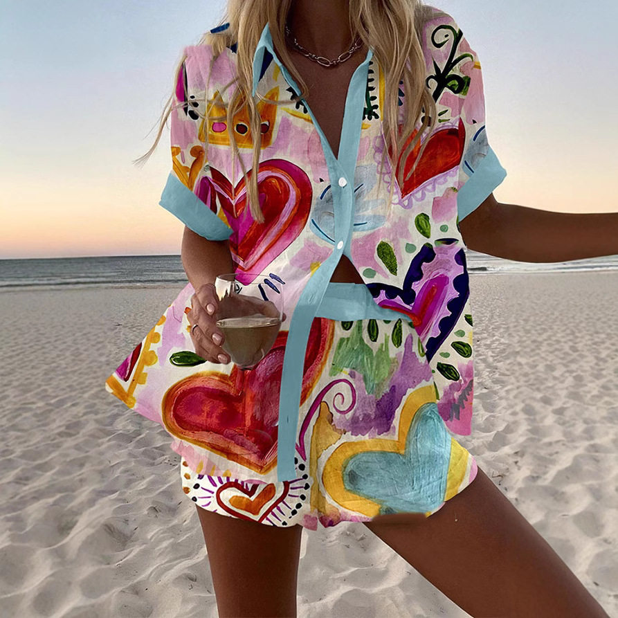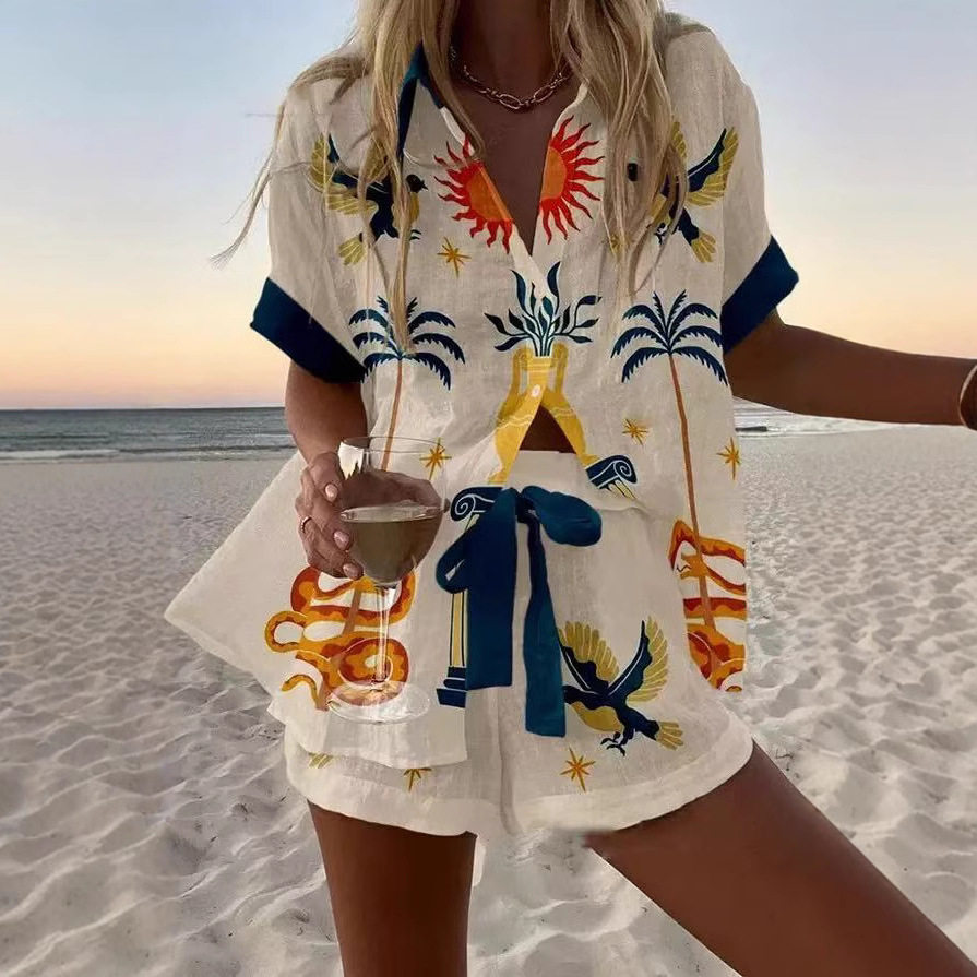 New Print Fashion Casual Lapel Shorts Shirt Suit宽松短裤衬衫 - SelectedForYou