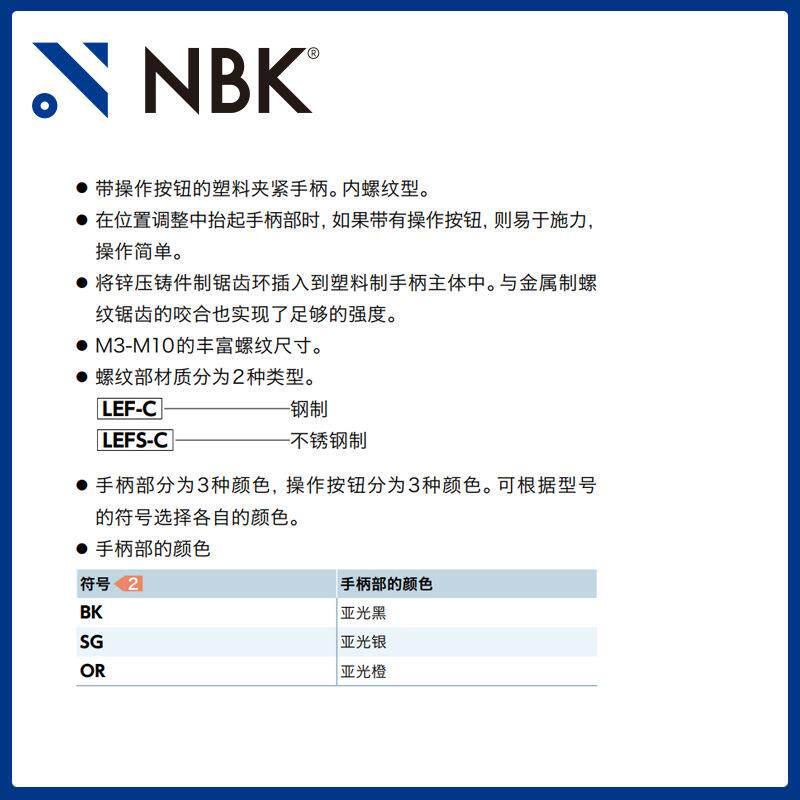 NBK LEFS-C 内螺纹塑料夹紧手柄 不锈钢螺纹 带操作按钮 机械厂家 - 凡轩严选的小店84