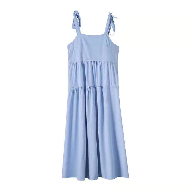 跨境白色吊带裙夏季新款小清新蝴蝶结系带中长款初恋裙子连衣裙女 - Yi She青栀女装
