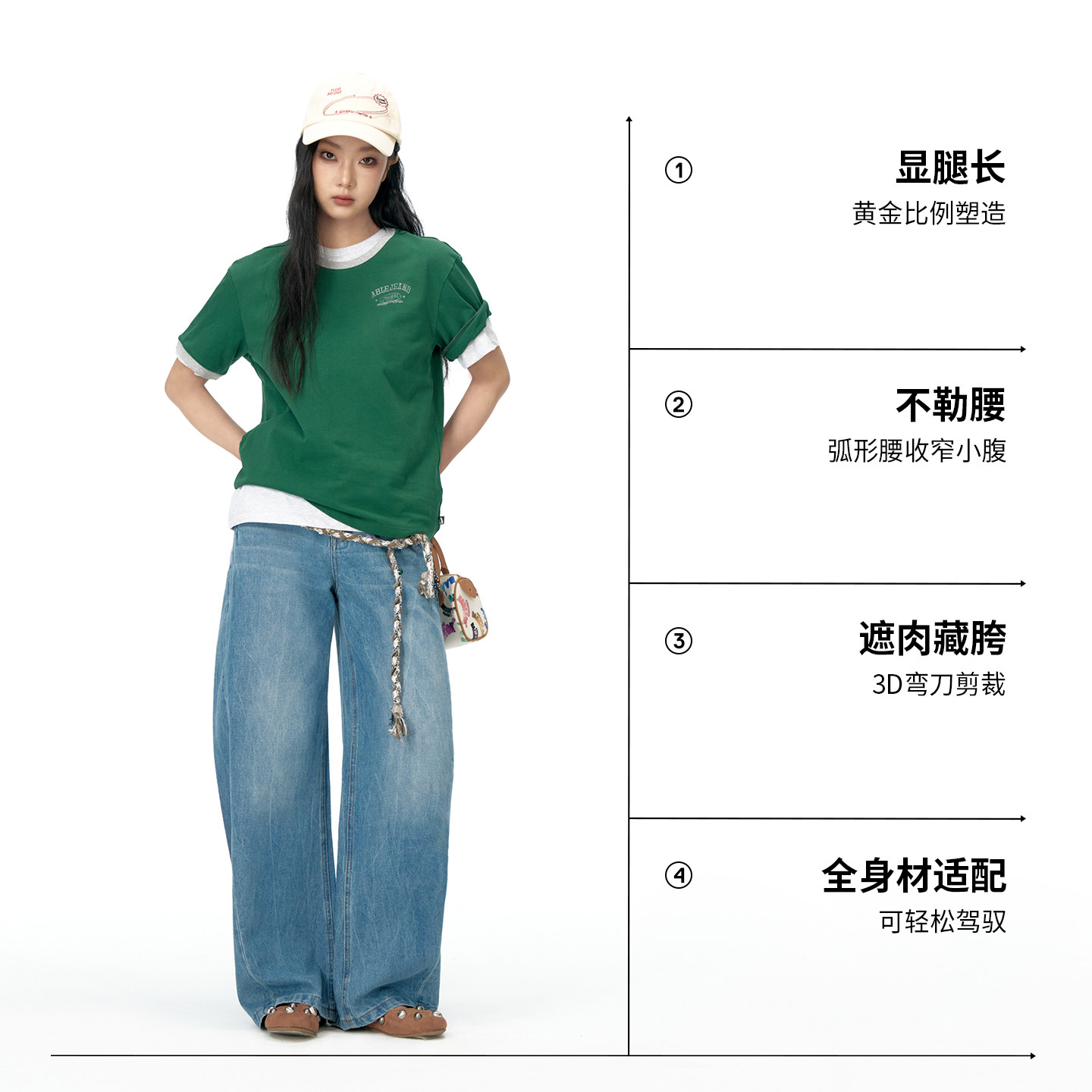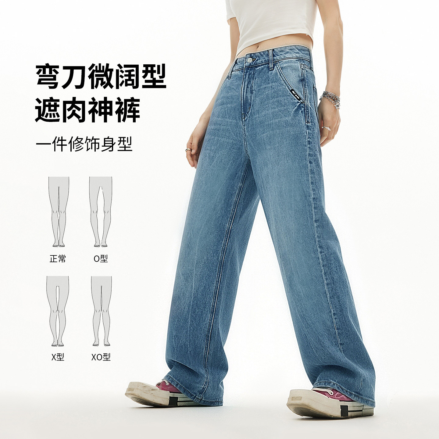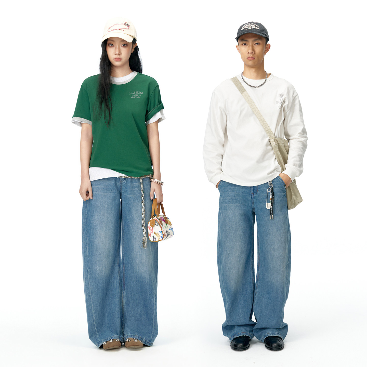 ABLE JEANS【工装拖地裤】新款女宽松百搭阔腿弯刀拖地牛仔裤 - ablejeans旗舰店