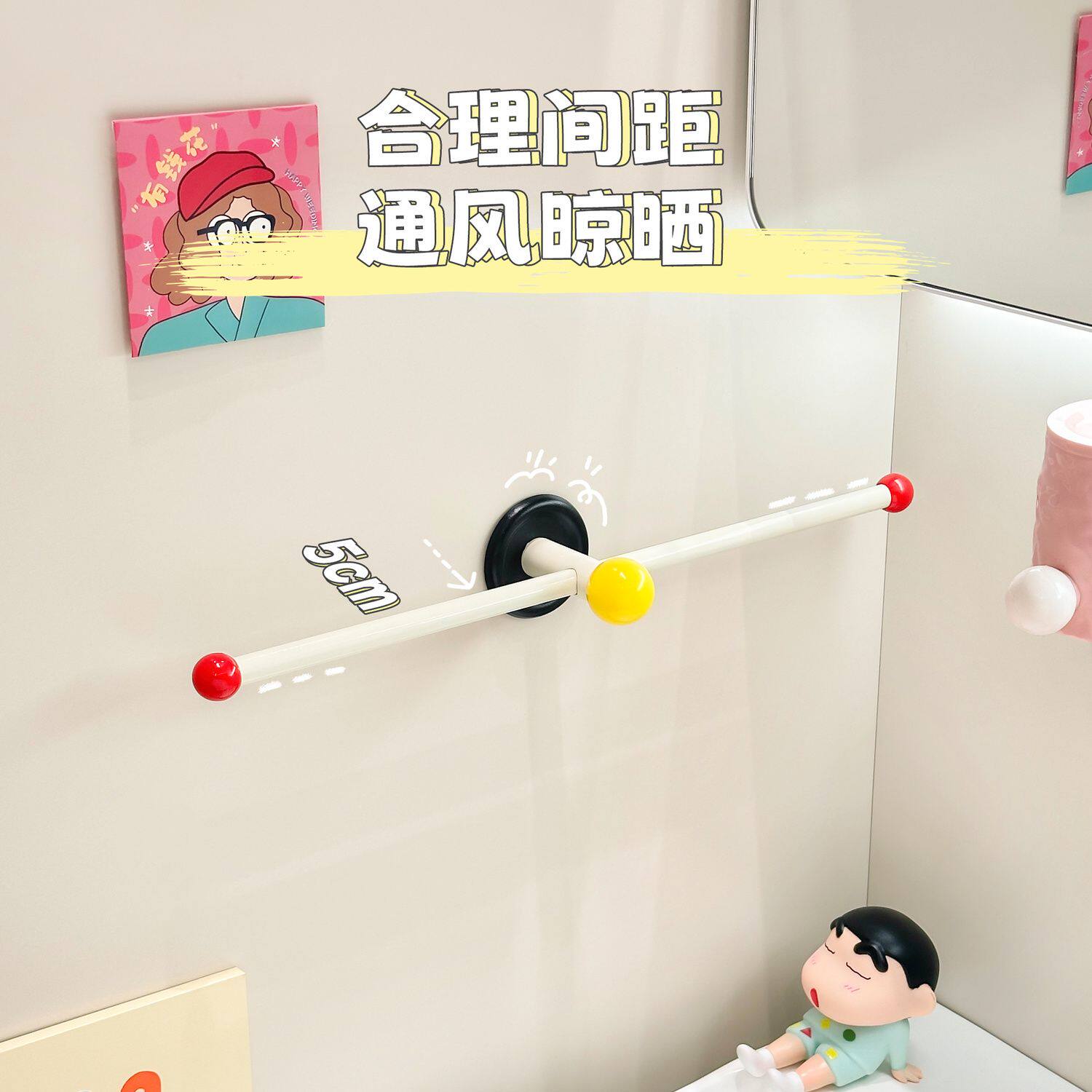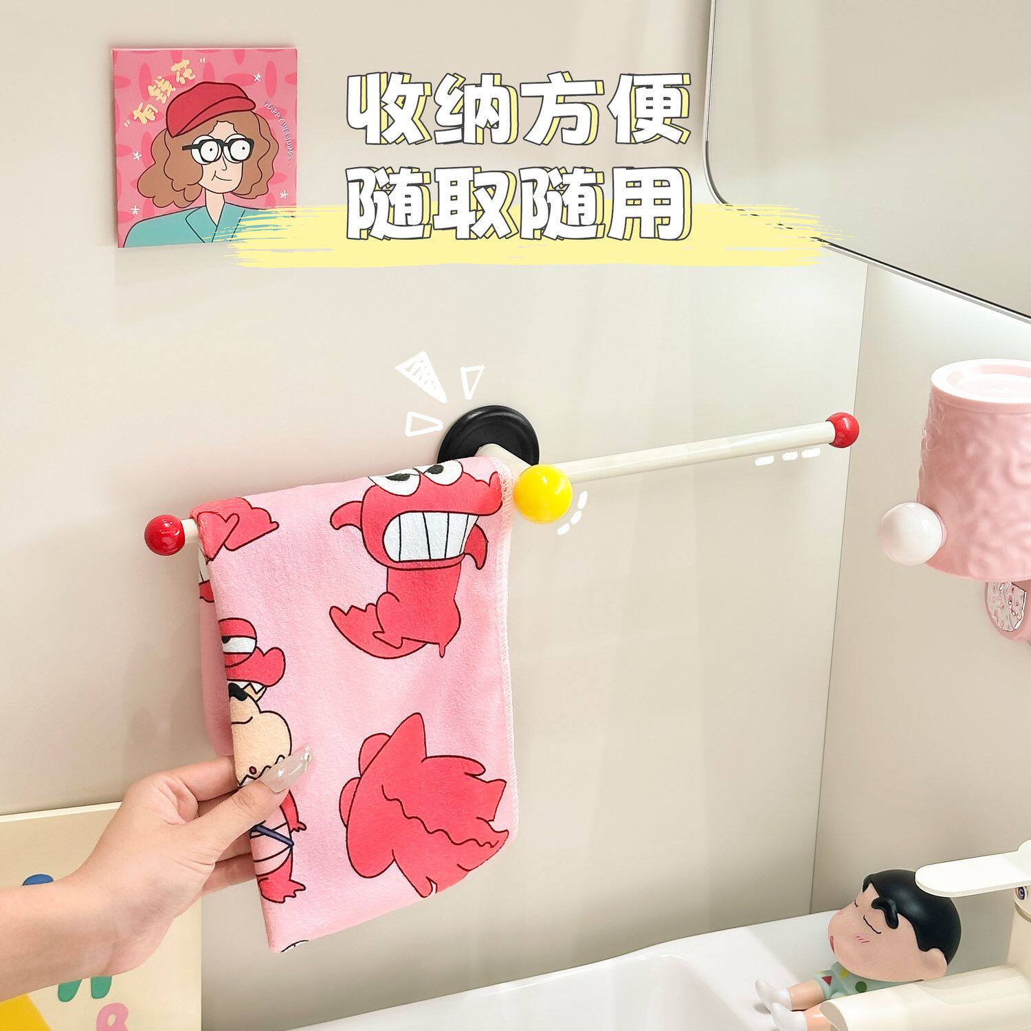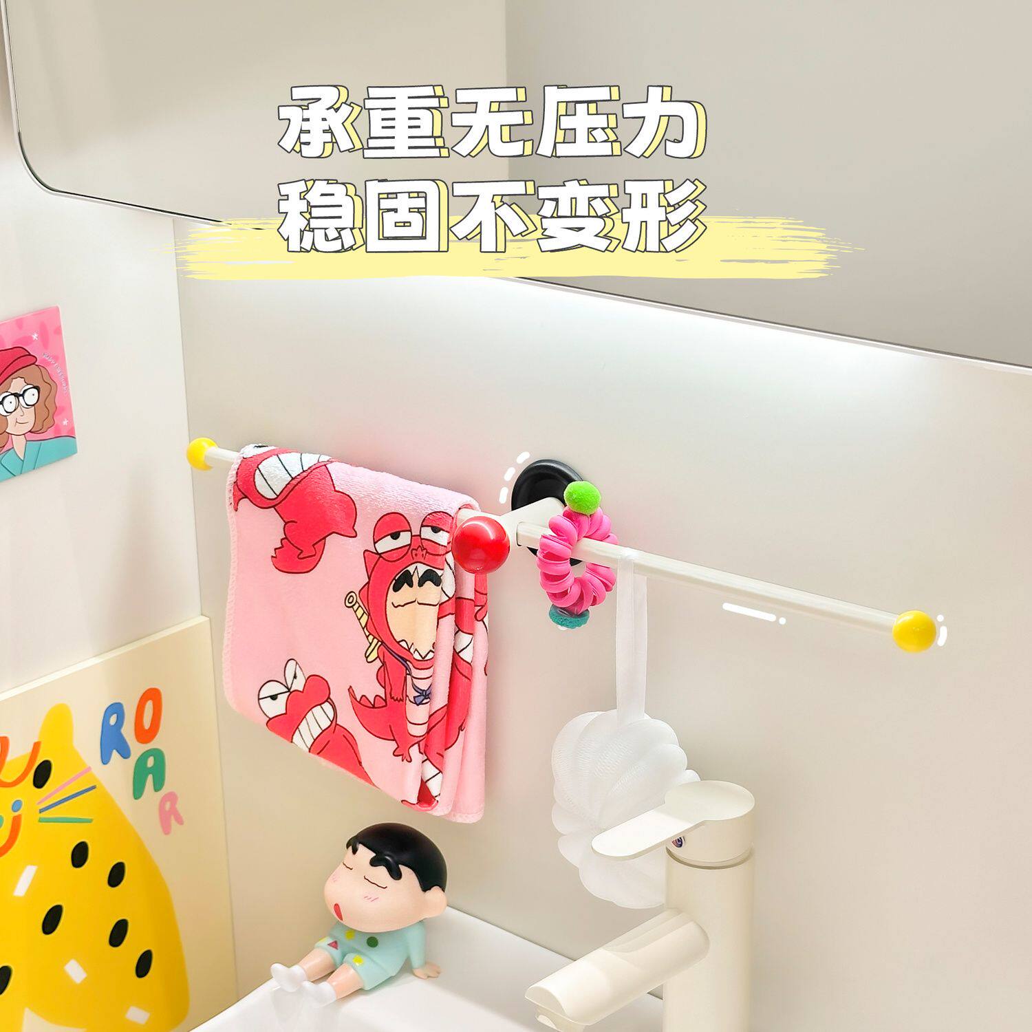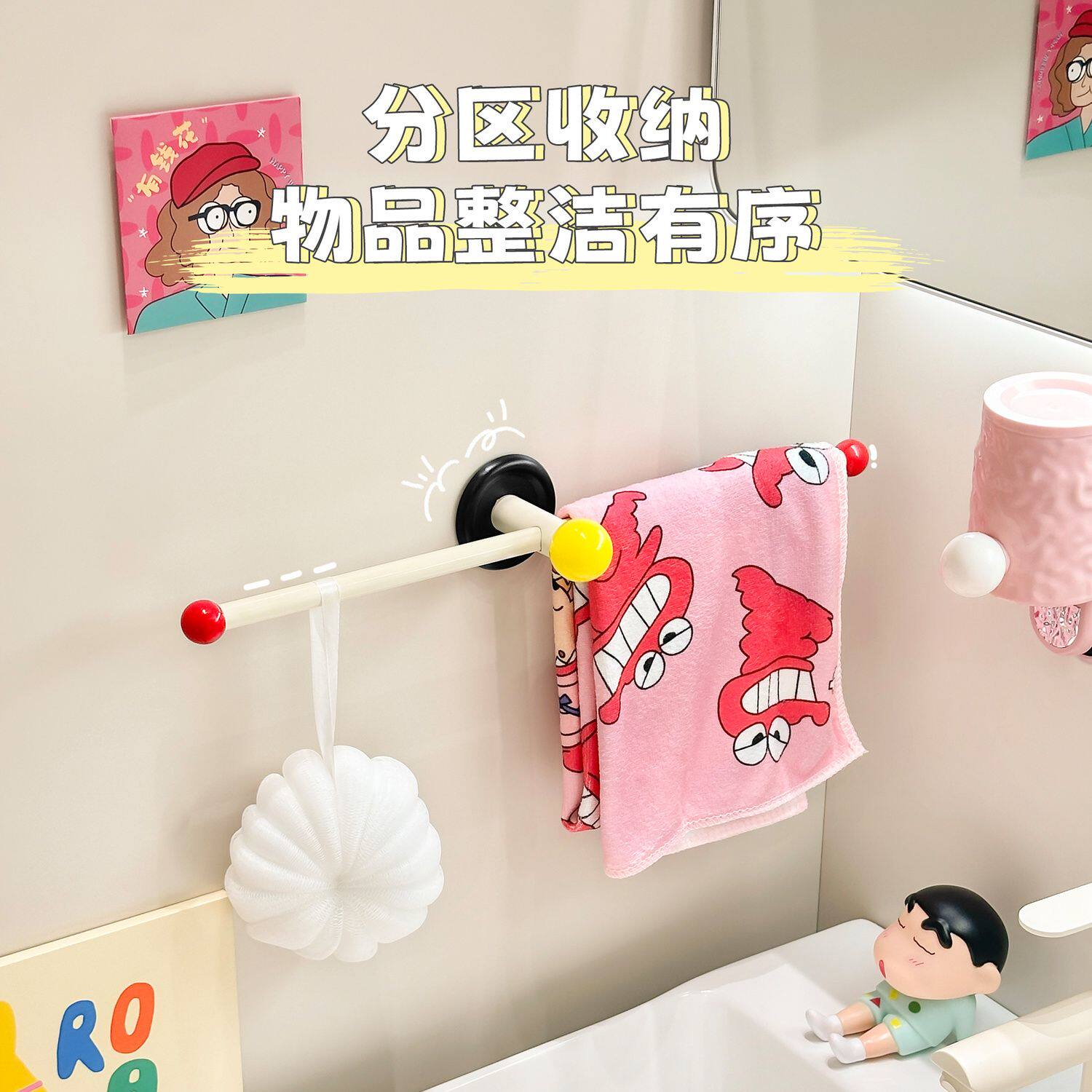 多巴胺毛巾架卫生间毛巾挂杆壁挂式免打孔浴室单杆浴巾收纳置物架 - 帽子先生馆