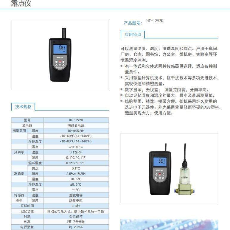 您的位置:安康生态农业开发平台  >   >  HT-1292温湿度计HT-1292D露点仪HT-1292AP大气压HT-6290温湿度计