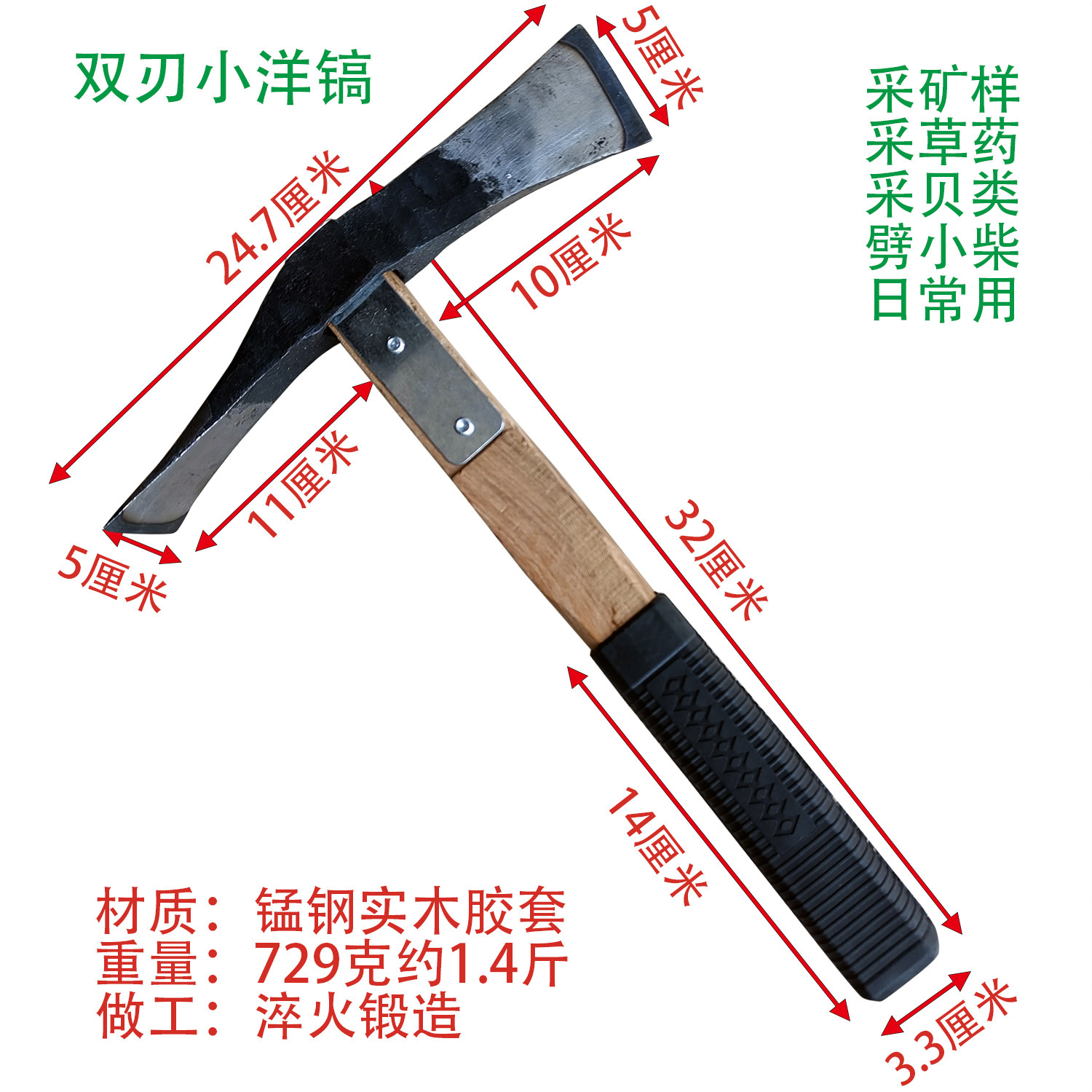 加固小洋镐锰钢十字镐草药镐矿样镐采药采矿地质镐勘探镐轻便耐用 - 思远五金工具店