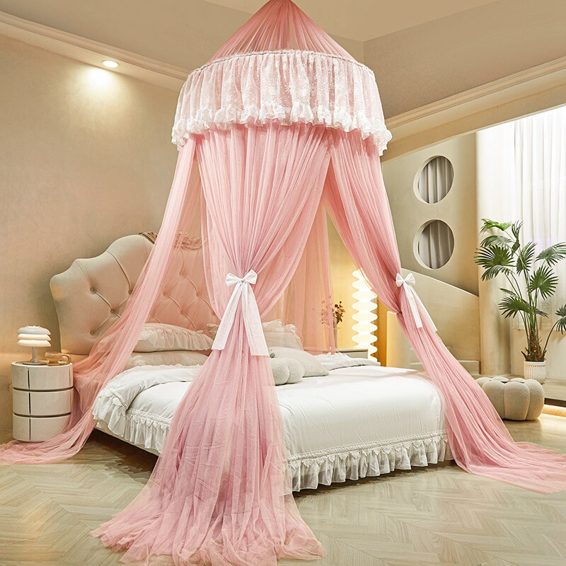 您的位置:安康生态农业开发平台  >   >  新款圆顶落地蚊帐家用蕾丝公主吊顶免安装加密蚊帐1.8m免打孔吸顶