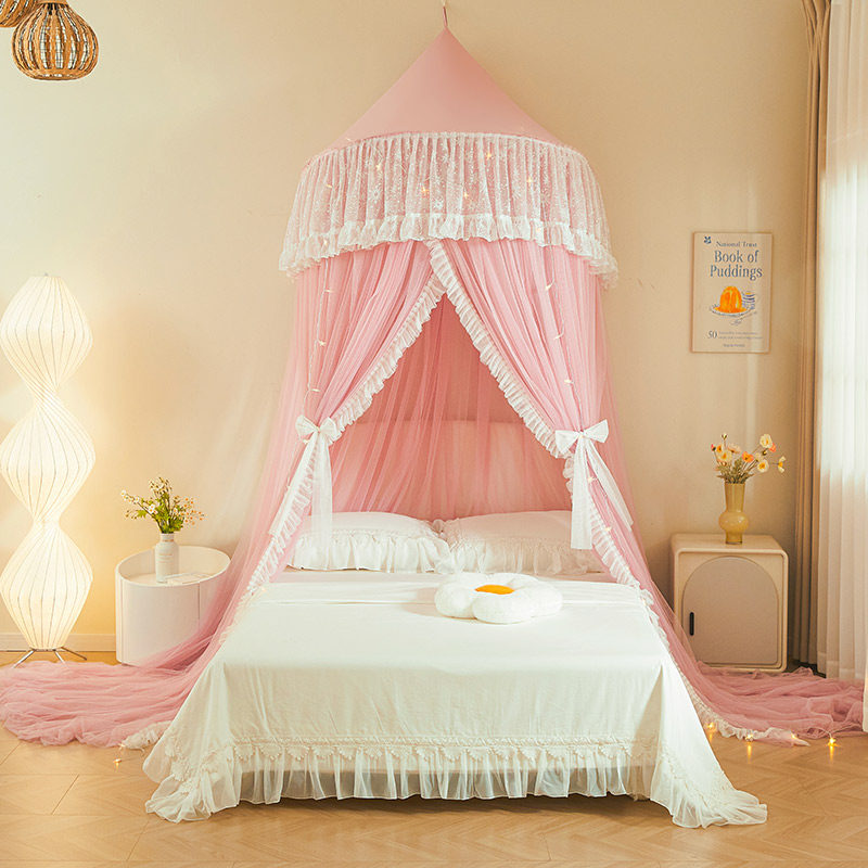 新款圆顶落地蚊帐家用蕾丝公主吊顶免安装加密蚊帐1.8m免打孔吸顶 - 国际自营店