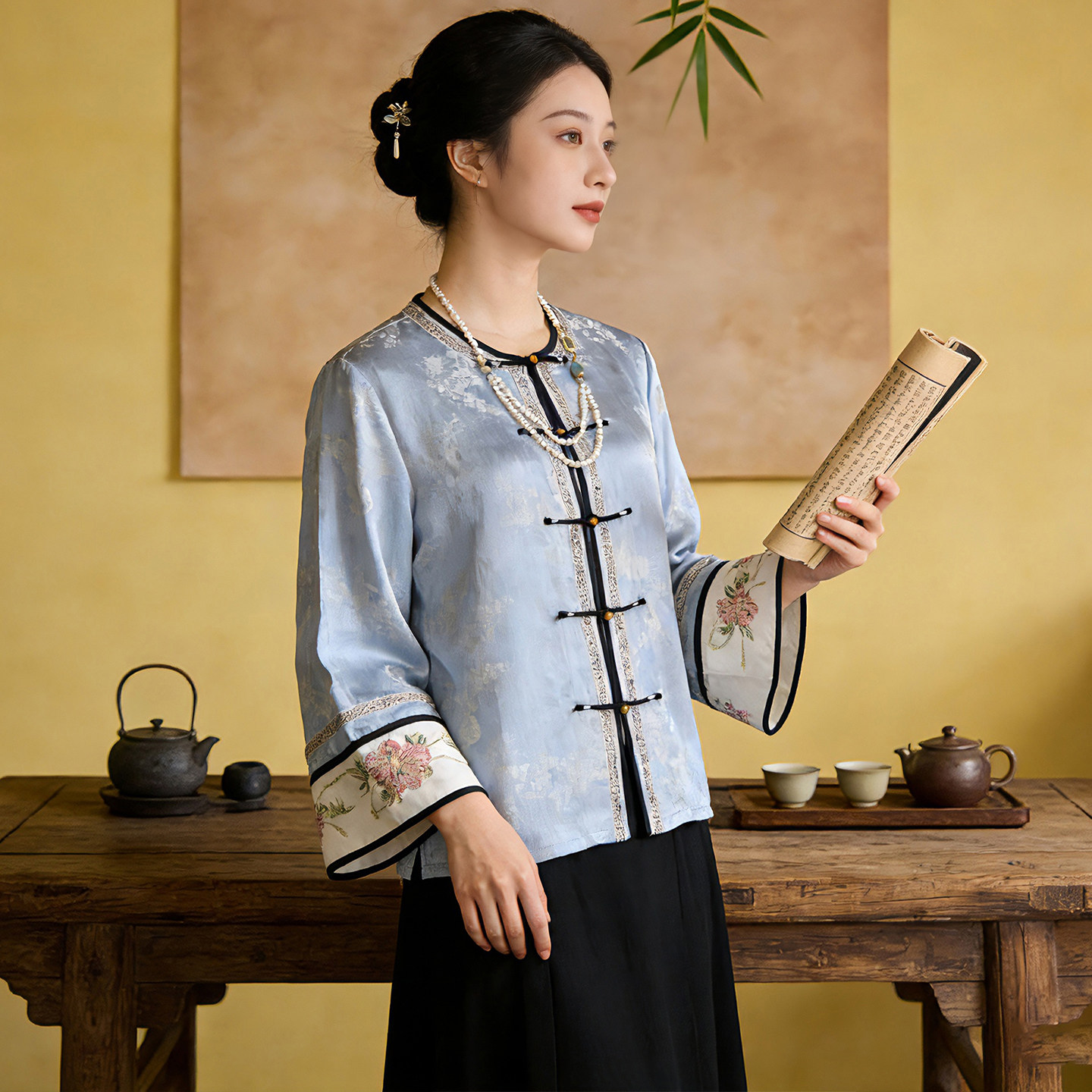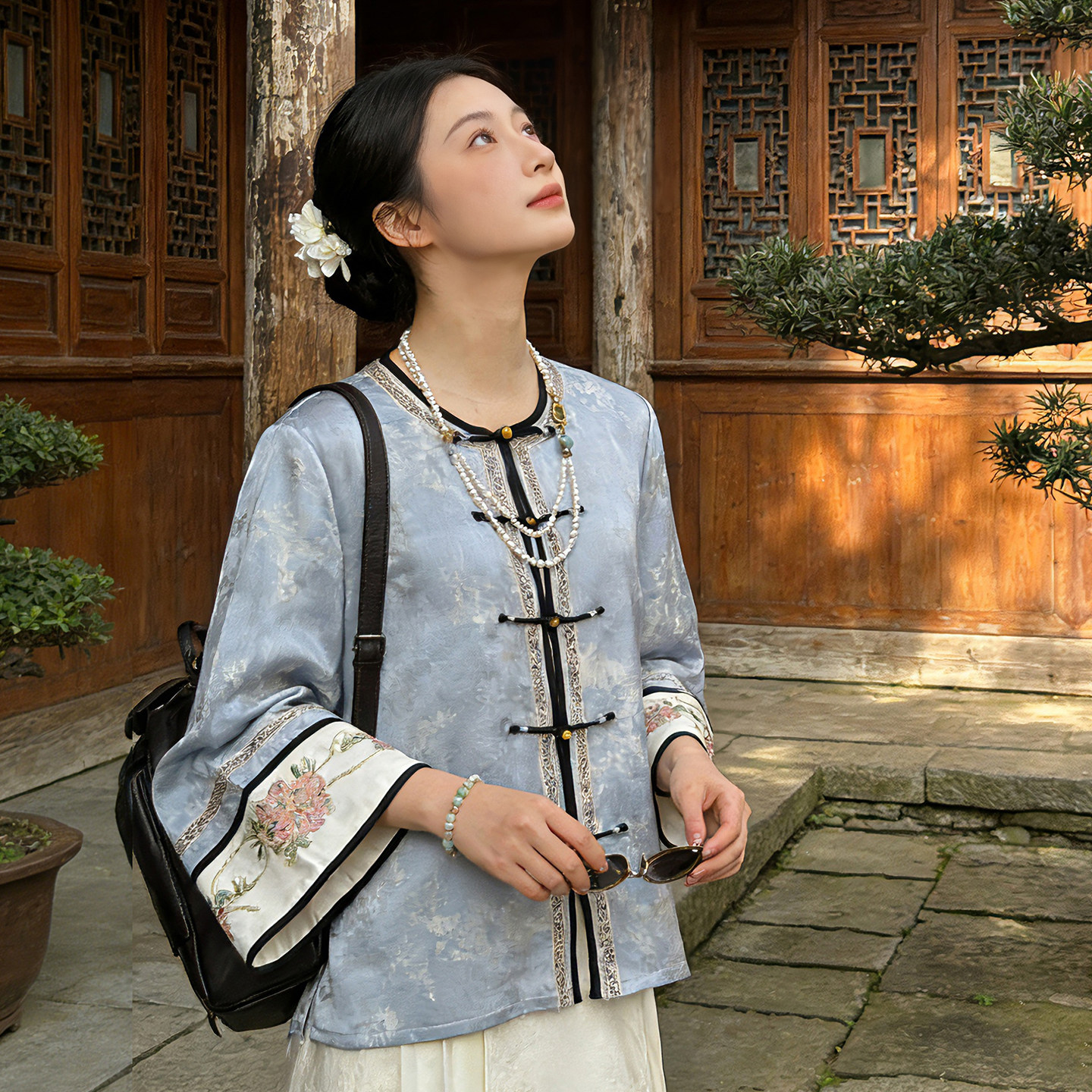 您的位置:安康生态农业开发平台  >   >  新中式通勤提花人丝刺绣上衣女春季立领衬衫长袖外套国风复古茶服