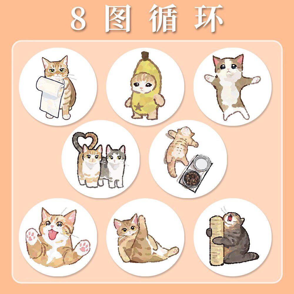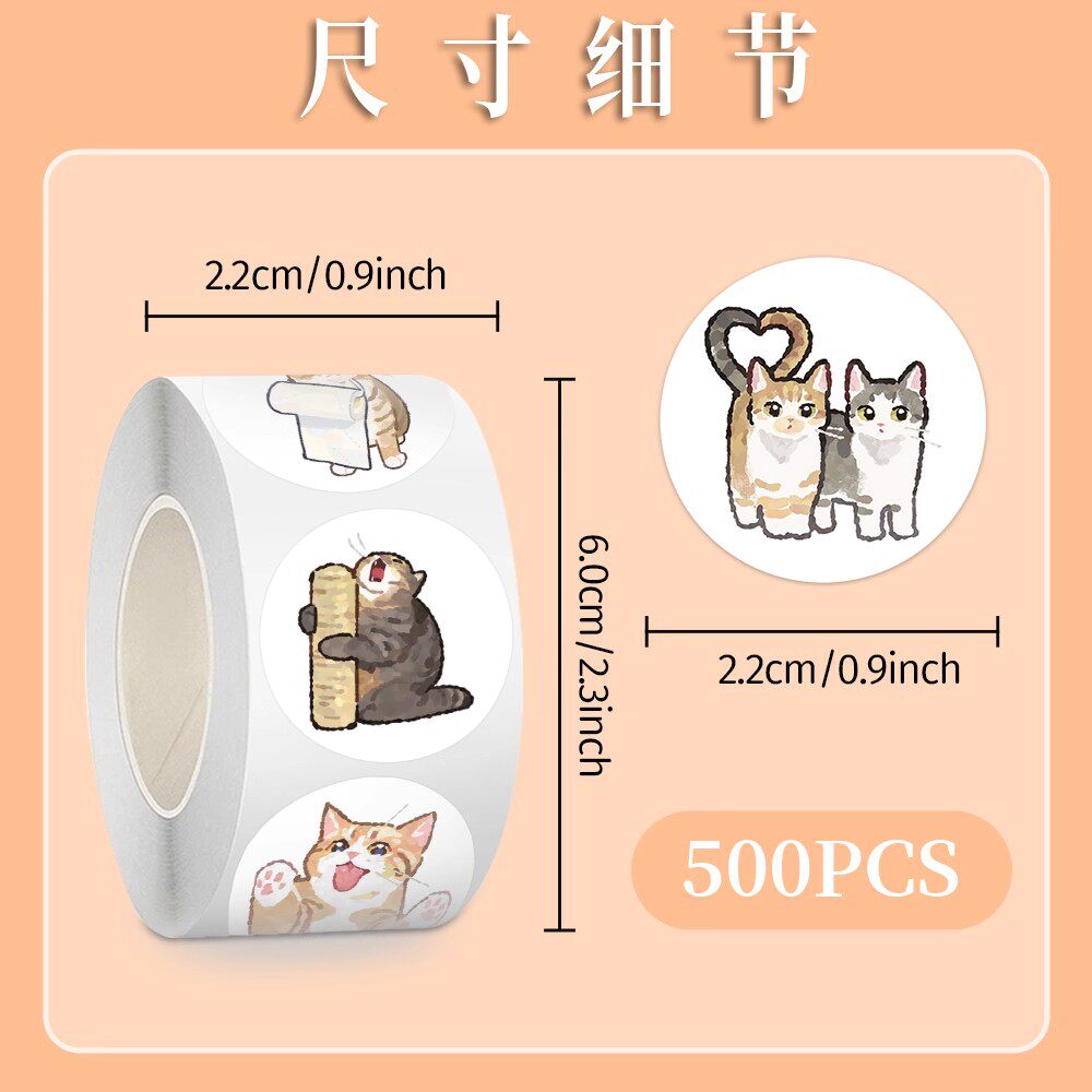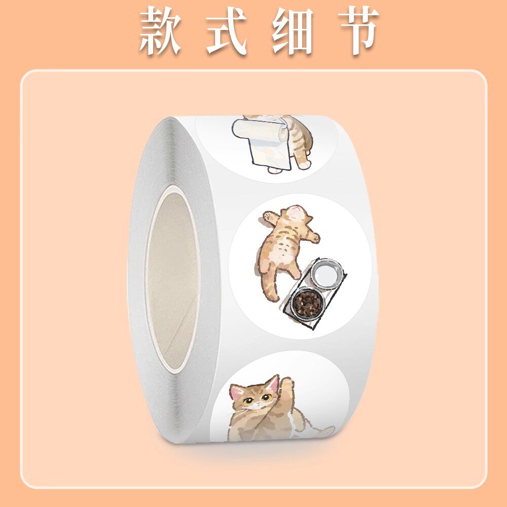 【大图释官方授权】1000贴卡通绘画猫猫卷卷贴可爱卡通diy自粘儿童玩具素材圆形贴画装饰手机电脑桌面封口贴 - 大图释旗舰店