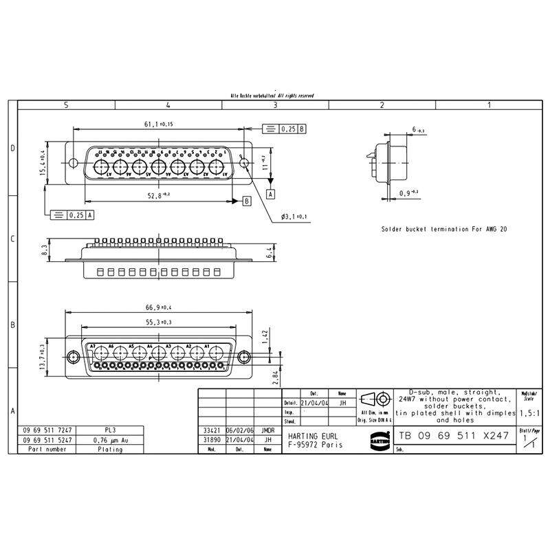 HARTING浩亭 09695115247 D-Sub5 5A24针 公头 连接器 0.5mm² - 雅质商贸城的小店63