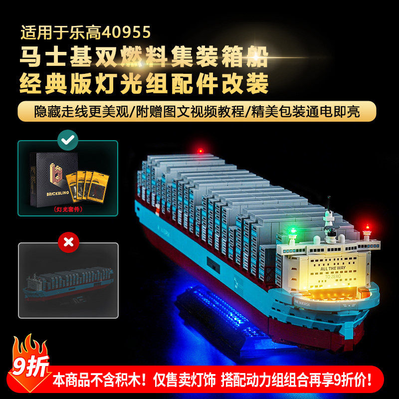 Brickbling适用乐高40955马士基双燃料集装箱船积木灯饰配件灯光 - BrickBling旗舰店