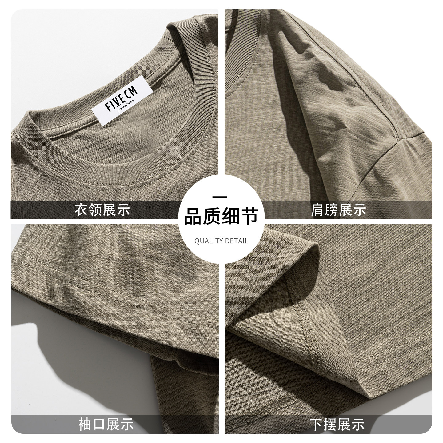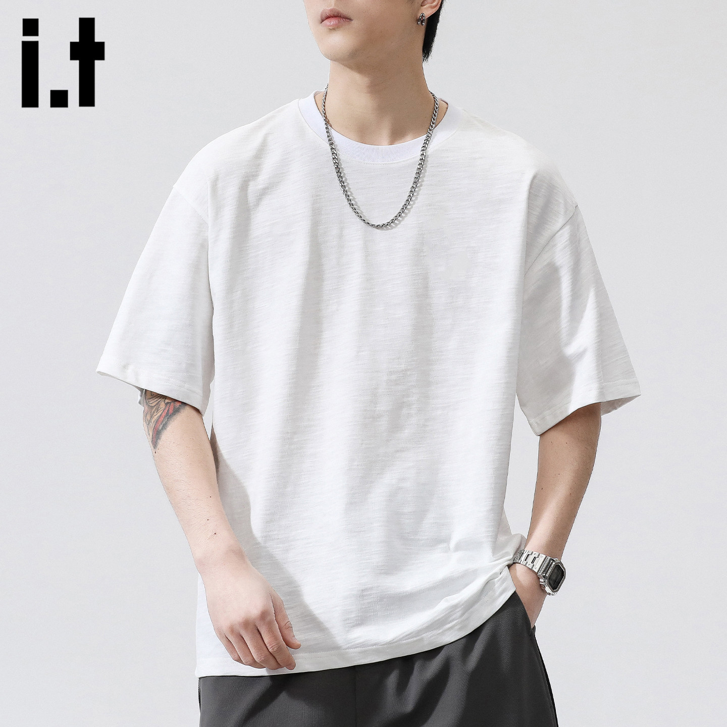it FIVECM重磅纯棉短袖T恤男夏季圆领宽松休闲白色透气上衣 - FIVE CM官方旗舰店