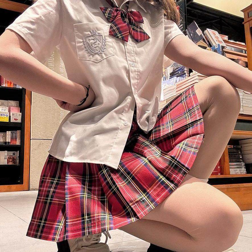 【小辣椒】集英社jk短裙正品红格甜辣风格校园风辣妹超短格裙红色 - 集英社JK原创