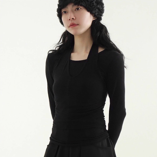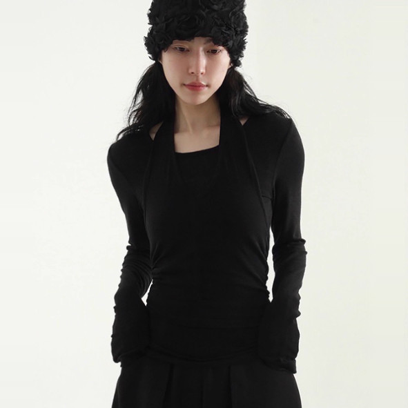 韩国代购25S/S halter neck layered tee 吊带背心长袖组合上衣 - 石大大韩国正品代购
